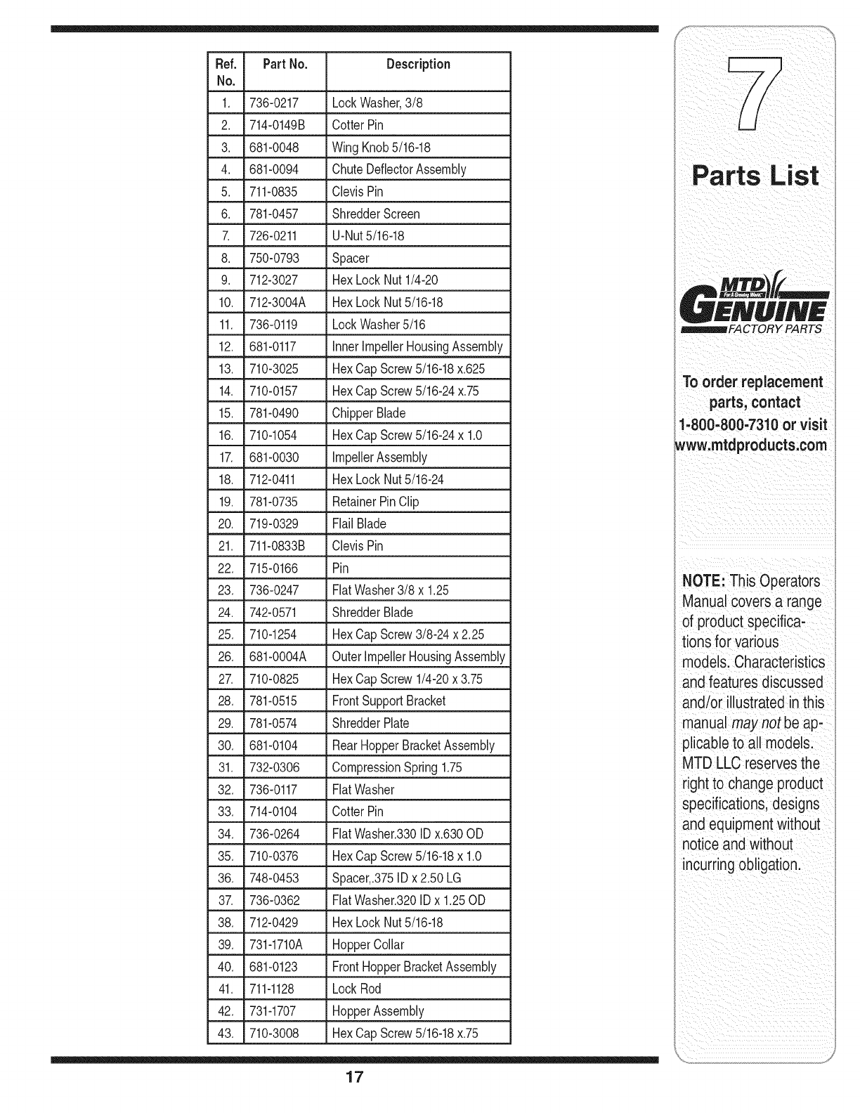 User Manual: MTD 24A-465E729 24A-465E729 MTD CHIPPER/SHREDDER - Manuals and Guides View the owners manual for your MTD CHIPPER/SHREDDER #24A465E729. Home:Lawn & Garden Parts:MTD Parts:MTD CHIPPER/SHREDDER Manual