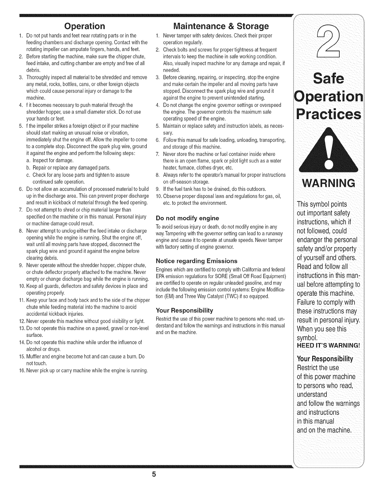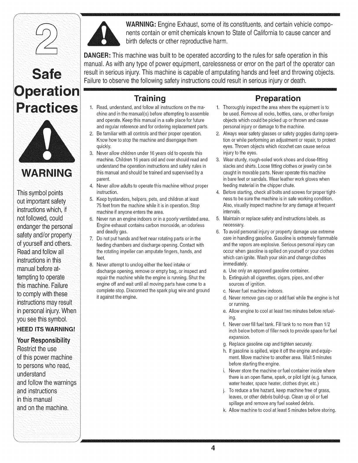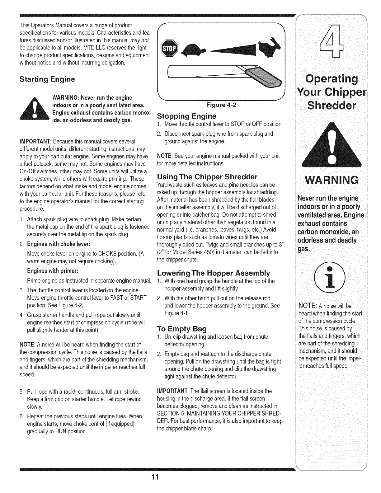 tions, warranty and service. Please refer to the engine manufacturer'sOwner's/Operator's Manual, packedseparately with