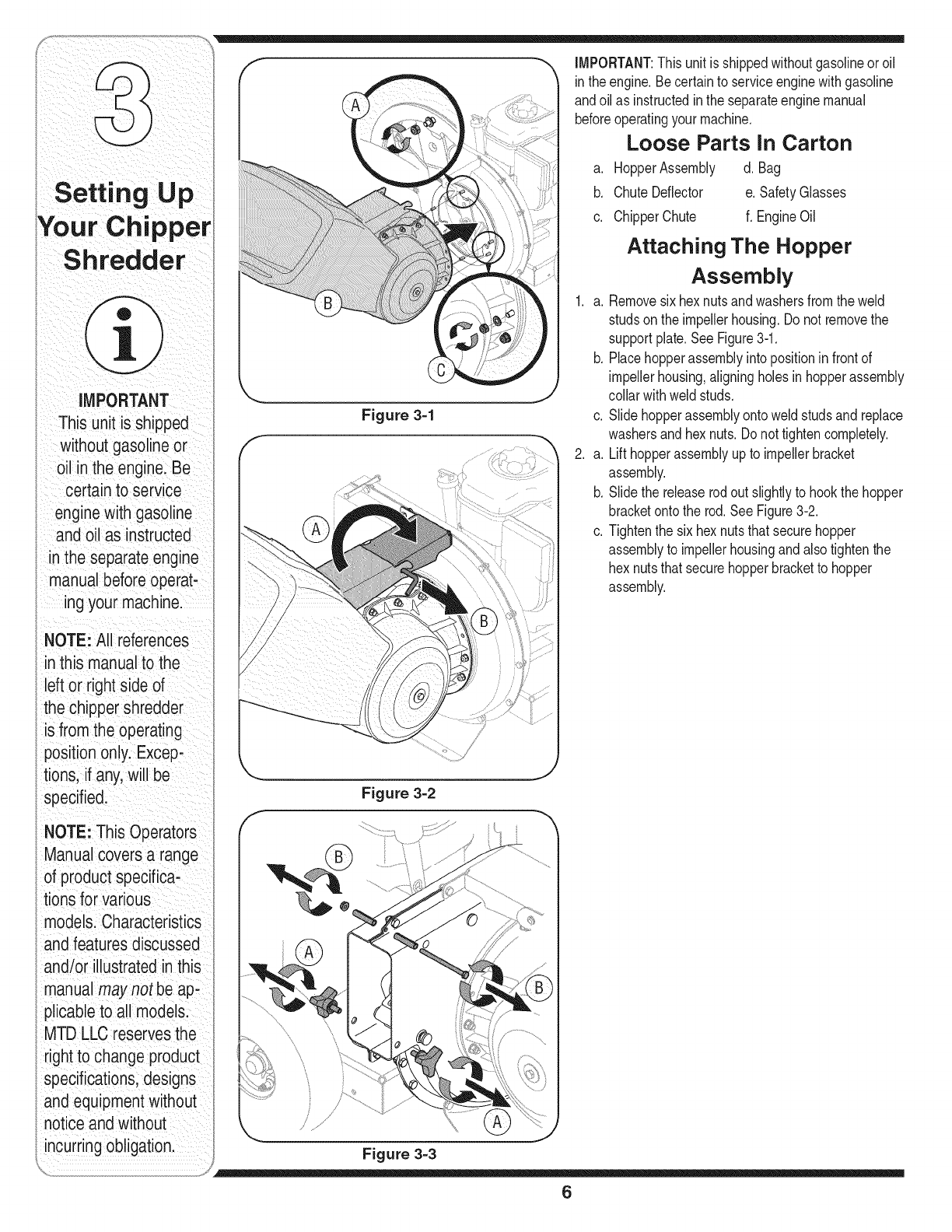 This Operator's IVlanual is an important part of your new chipper shredder, it wiil help you assemble, pre=