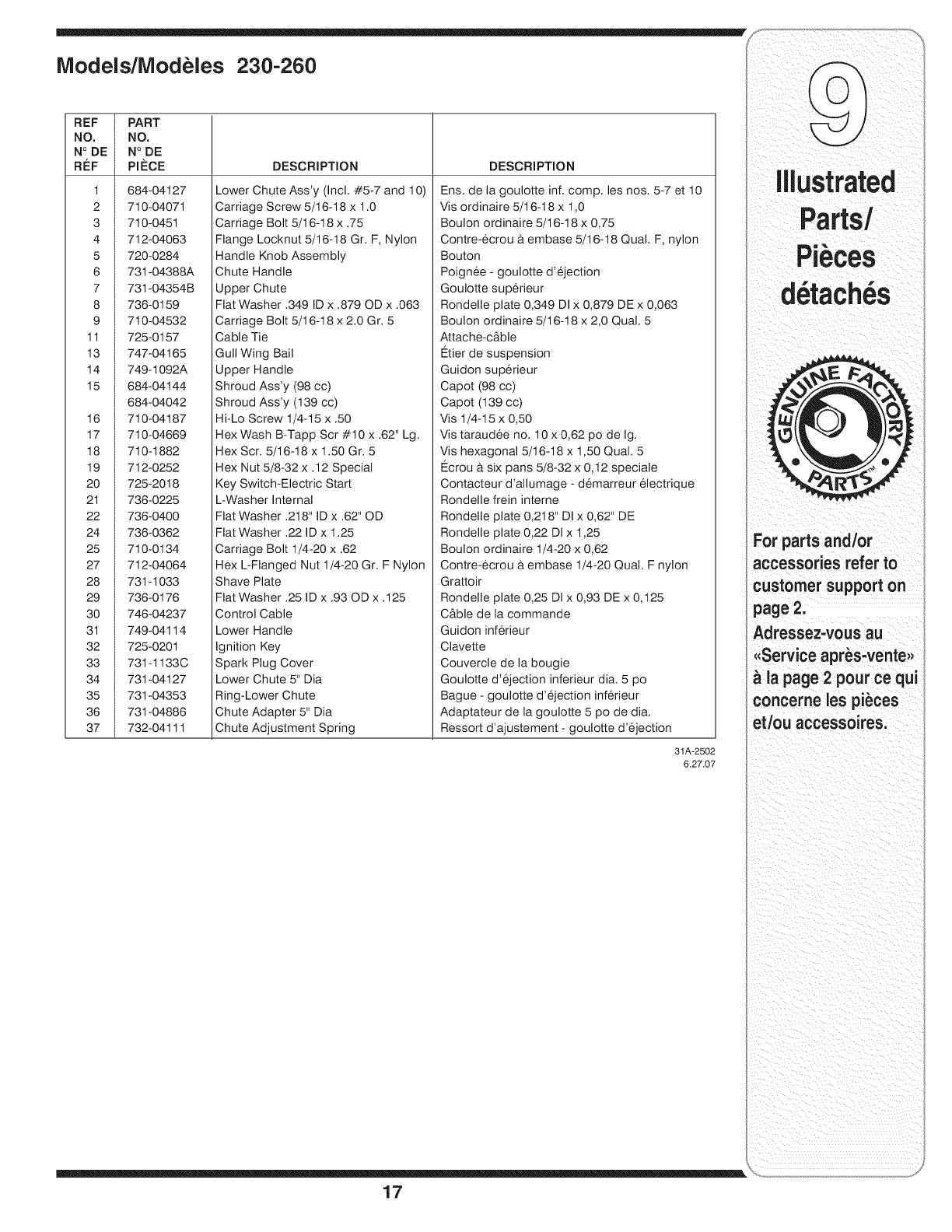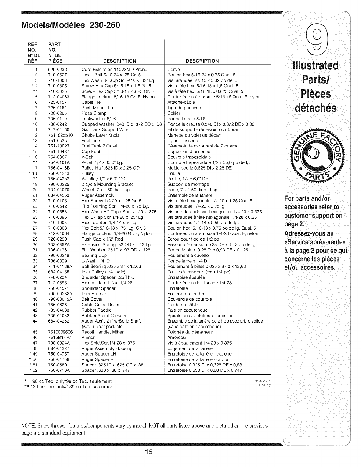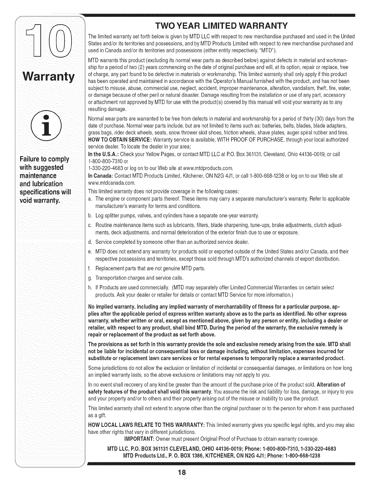 For CanadianCustomers:MTDProducts Ltd., P.O.BOX1386,KITCHENER,ONTARION2G4J1 07/12/07