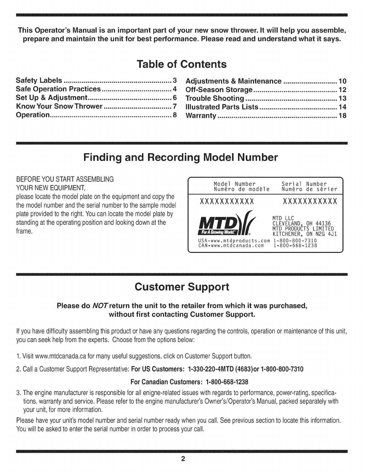 1.Visit www.mtdcanada.cafor many useful suggestions, click on Customer Support button.