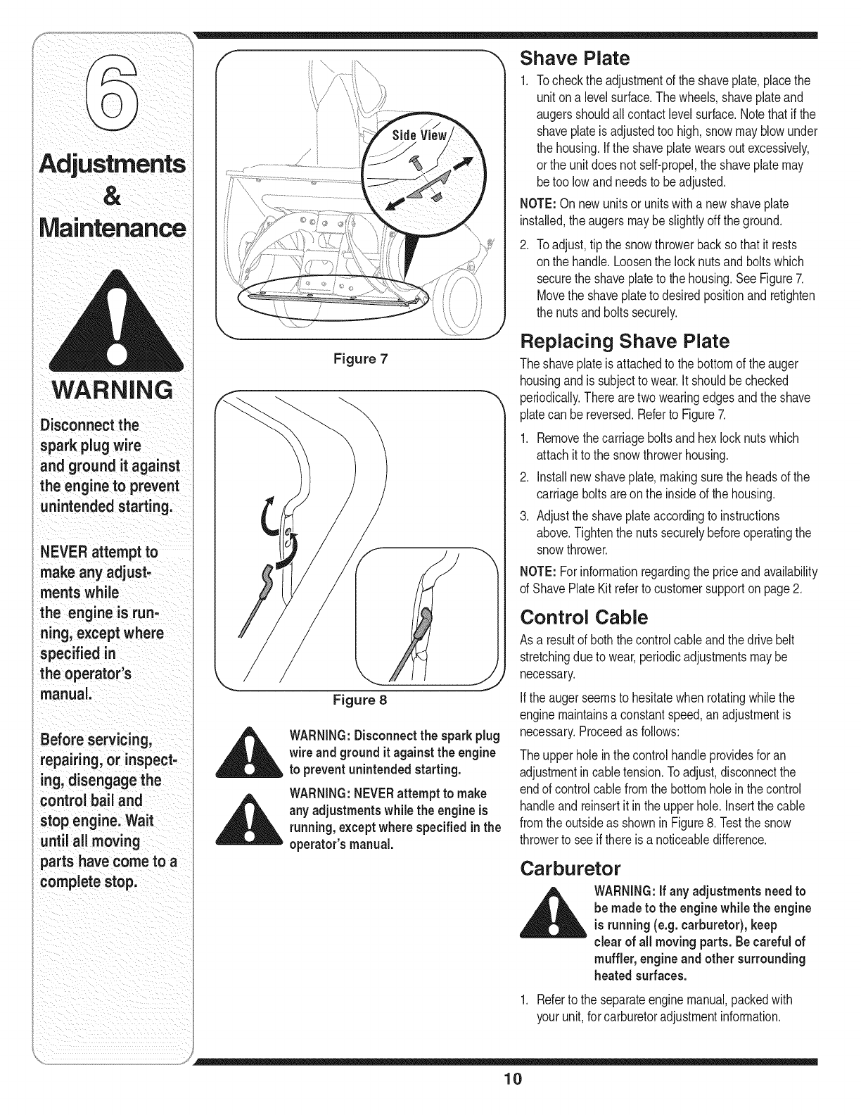 tions, warranty and service. Please refer to the engine manufacturer'sOwner's/Operator'sManual, packedseparately with