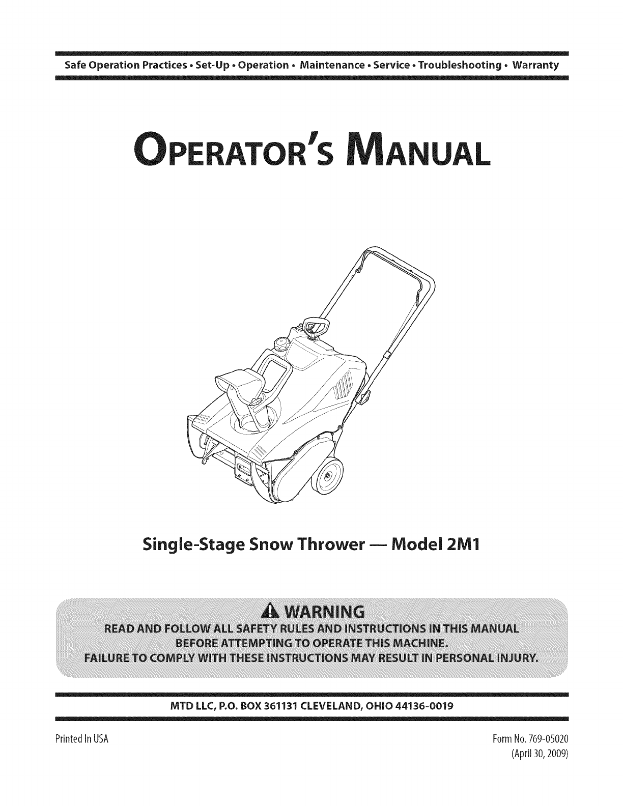 MTD 31A 2M1A700 User Manual SNOW THROWER Manuals And Guides 1108090L