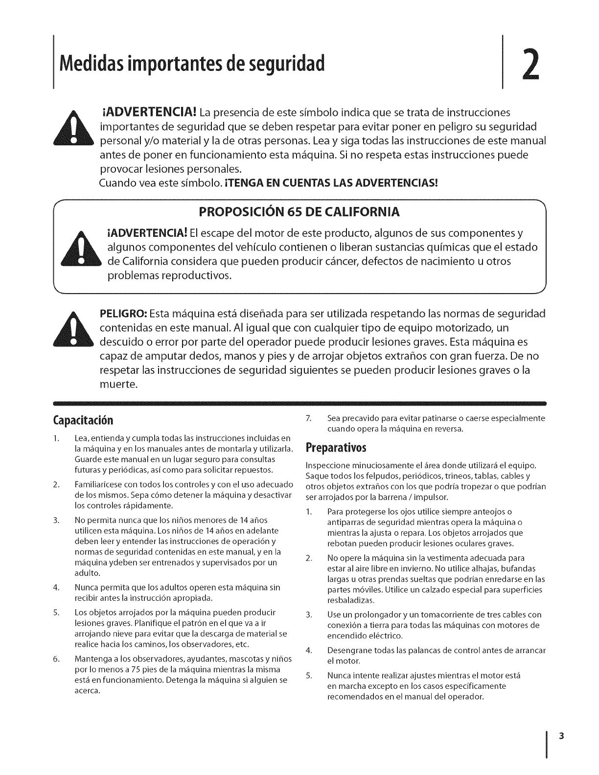 toes and feet and throwing foreign objects. Failure to observe the following safety
