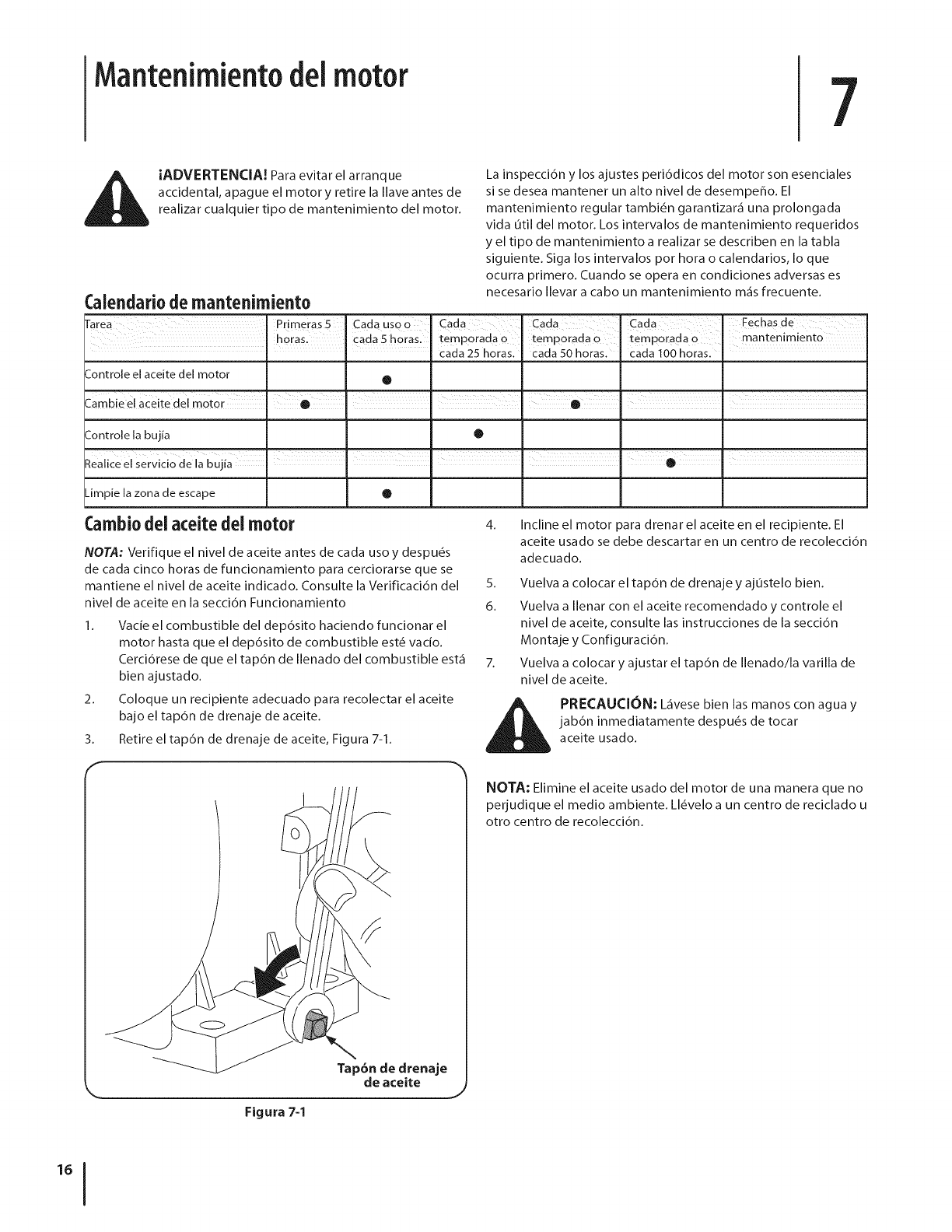 zaci6n del motor, los ajustes de los frenos, del embrague o de la
