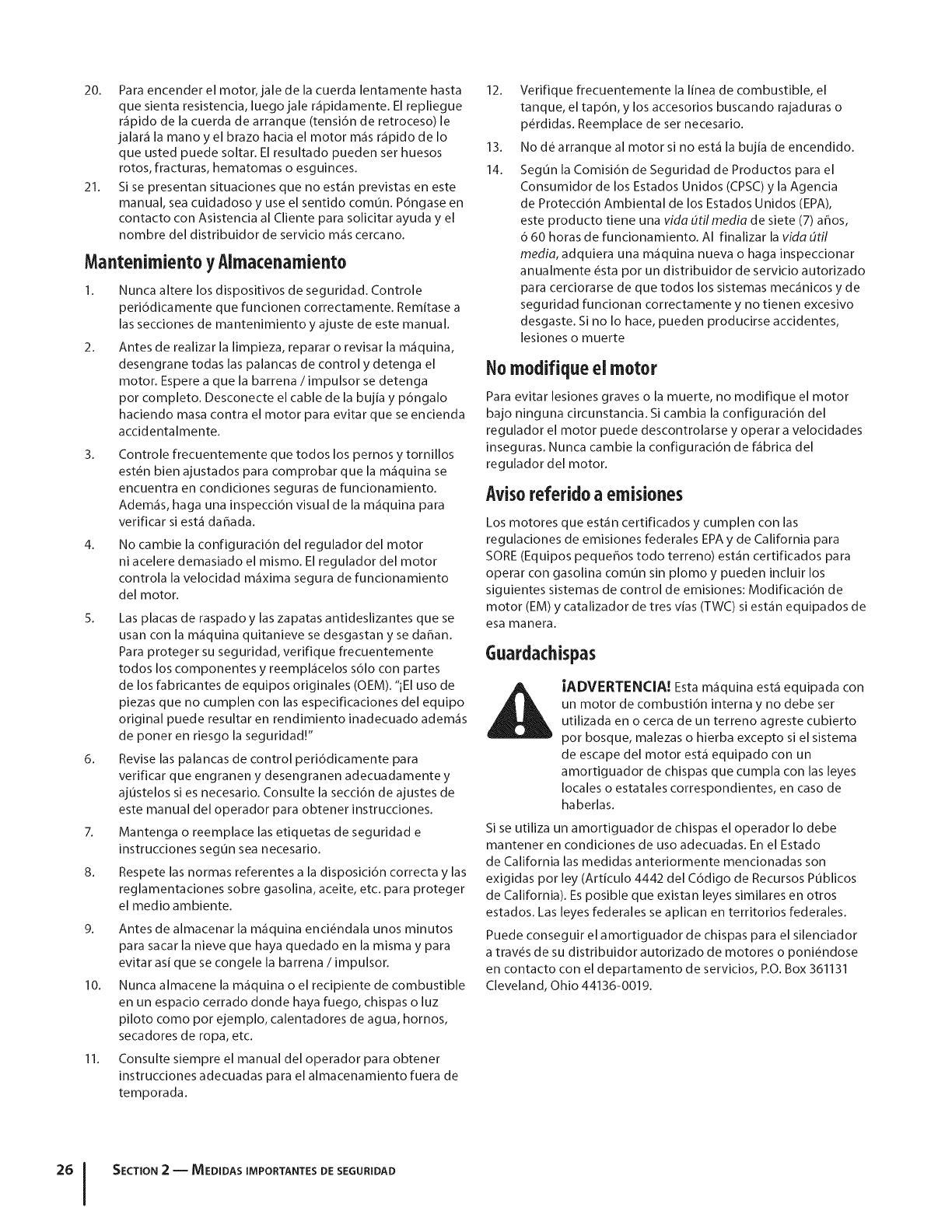 g. MTD no garantiza este producto para uso comercial.