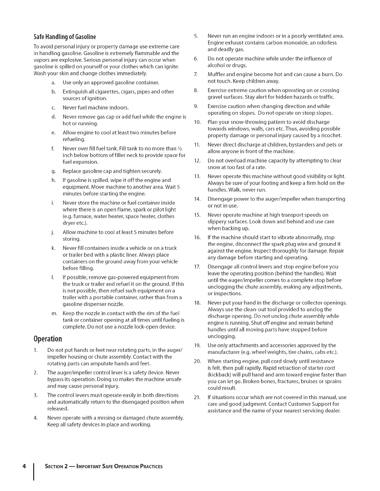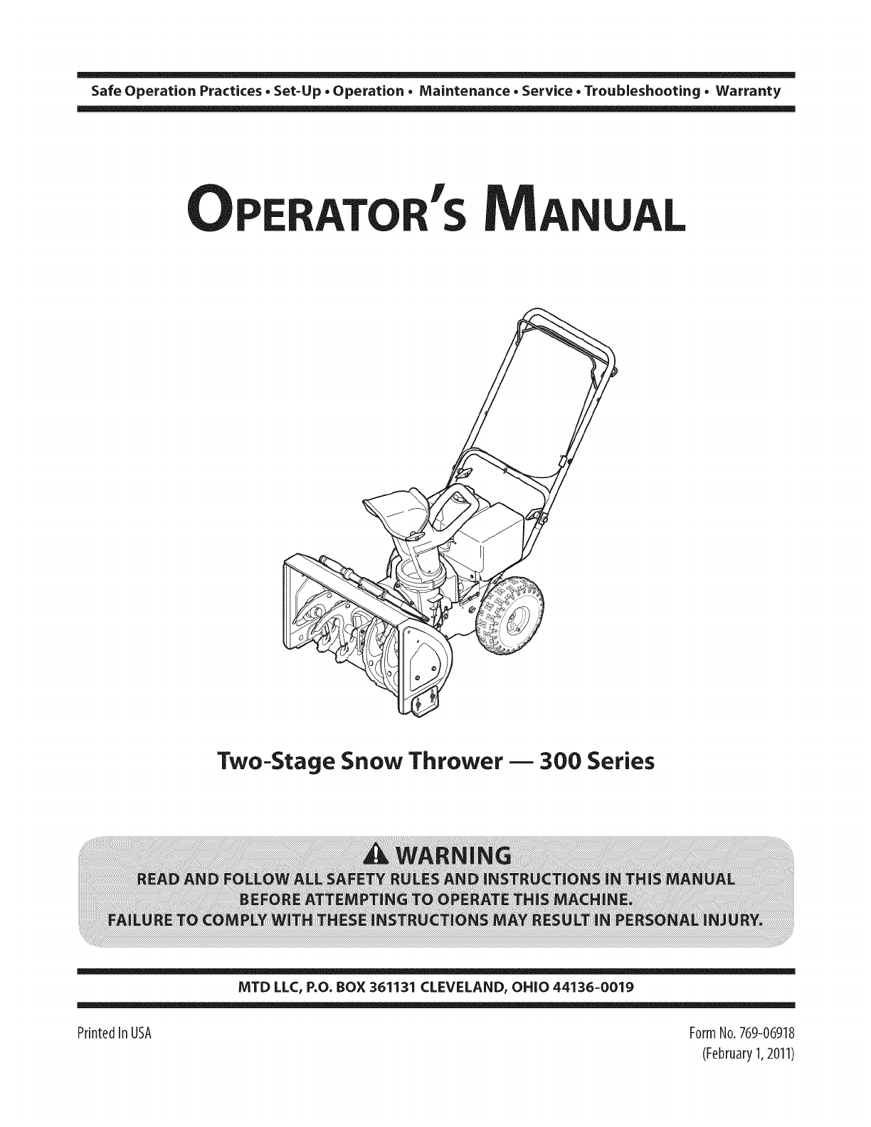 Safe Operation Practices • Set-Up • Operation • Maintenance • Service • Troubleshooting • Warranty