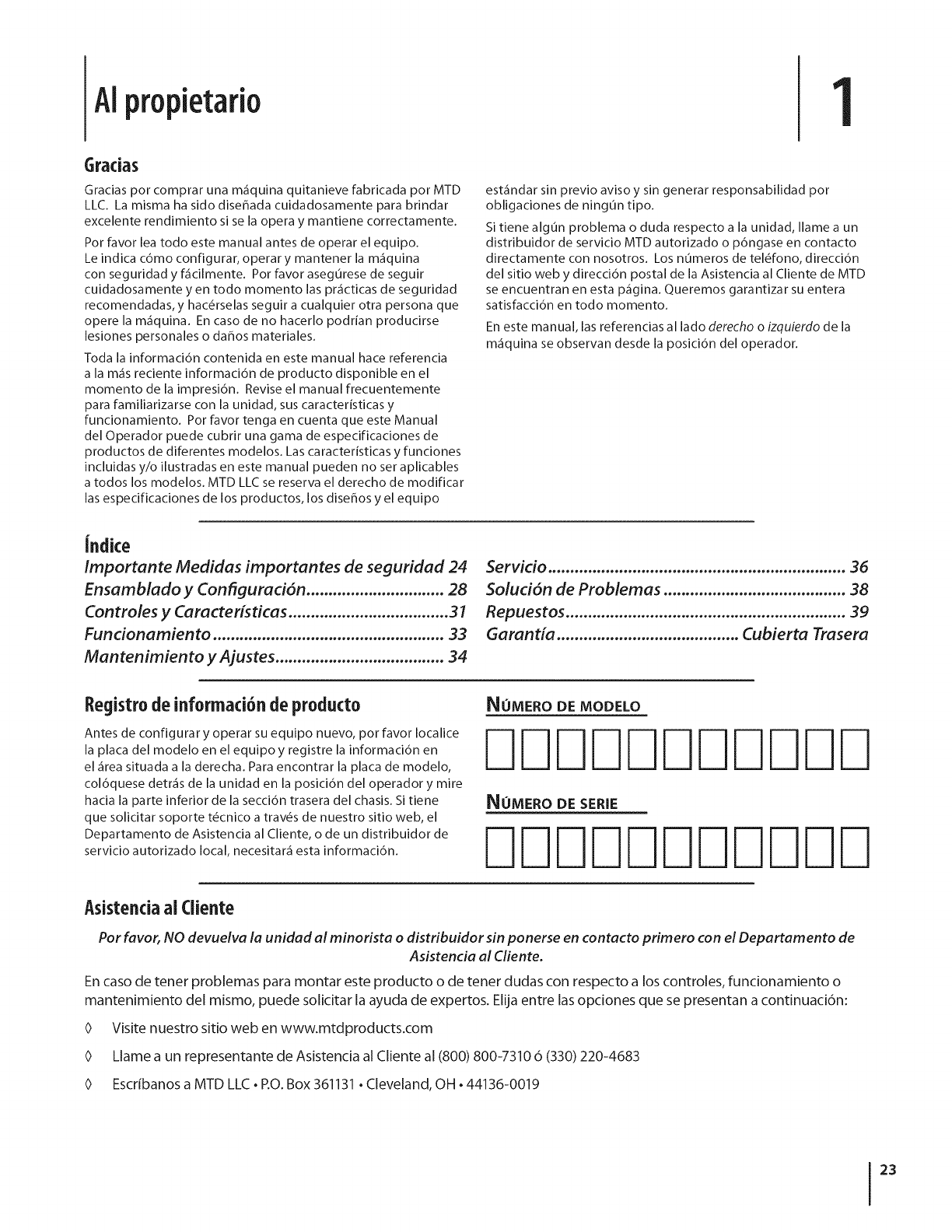 Consulte las pAginasamarillas, o p6ngase en contacto con MTD