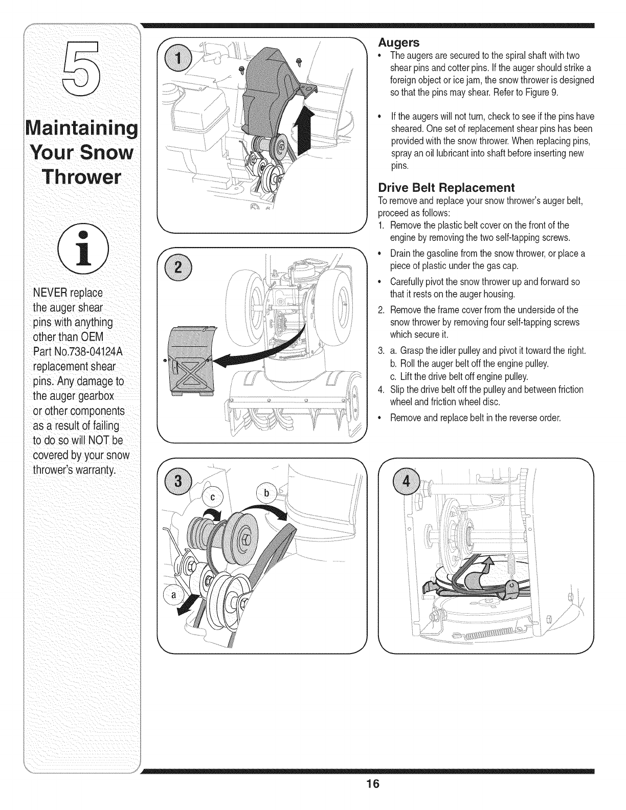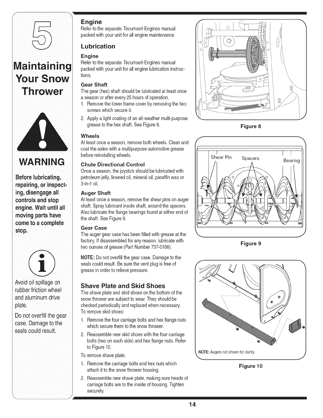 Maintaining Your Snow Thrower ...................... 14