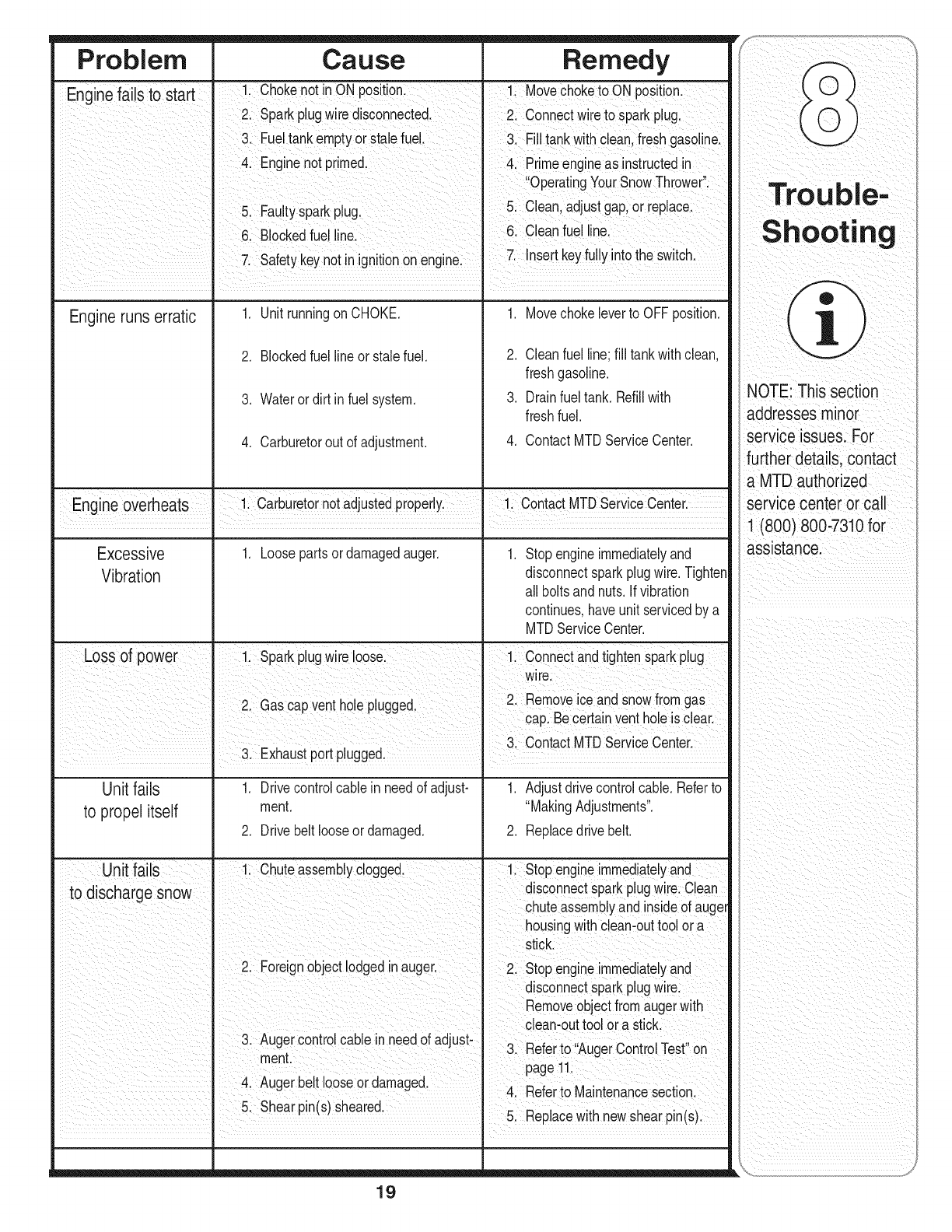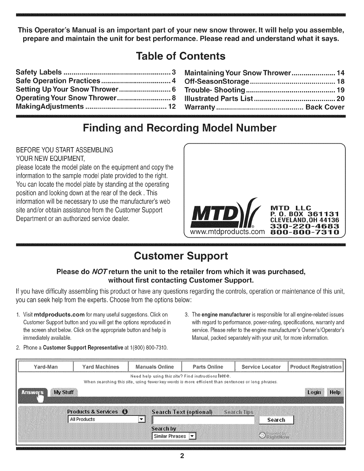 MTD LLC, P.O. BOX 361131 CLEVELAND, OHIO 44136-0019; Phone: 1-800-800-7310, 1-330-220-4683