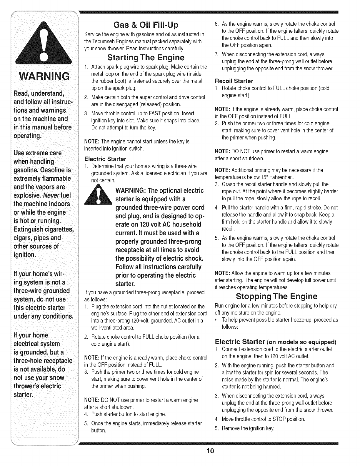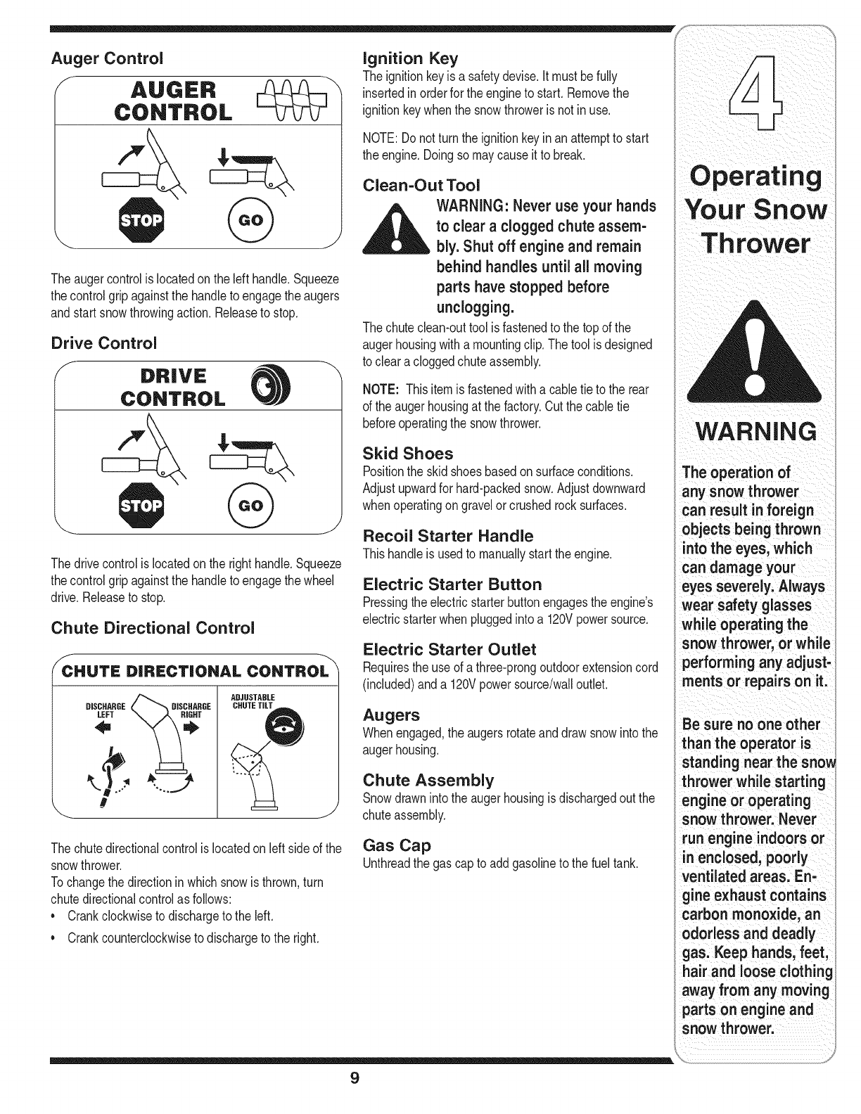 Operating Your Snow Thrower ........................... 8