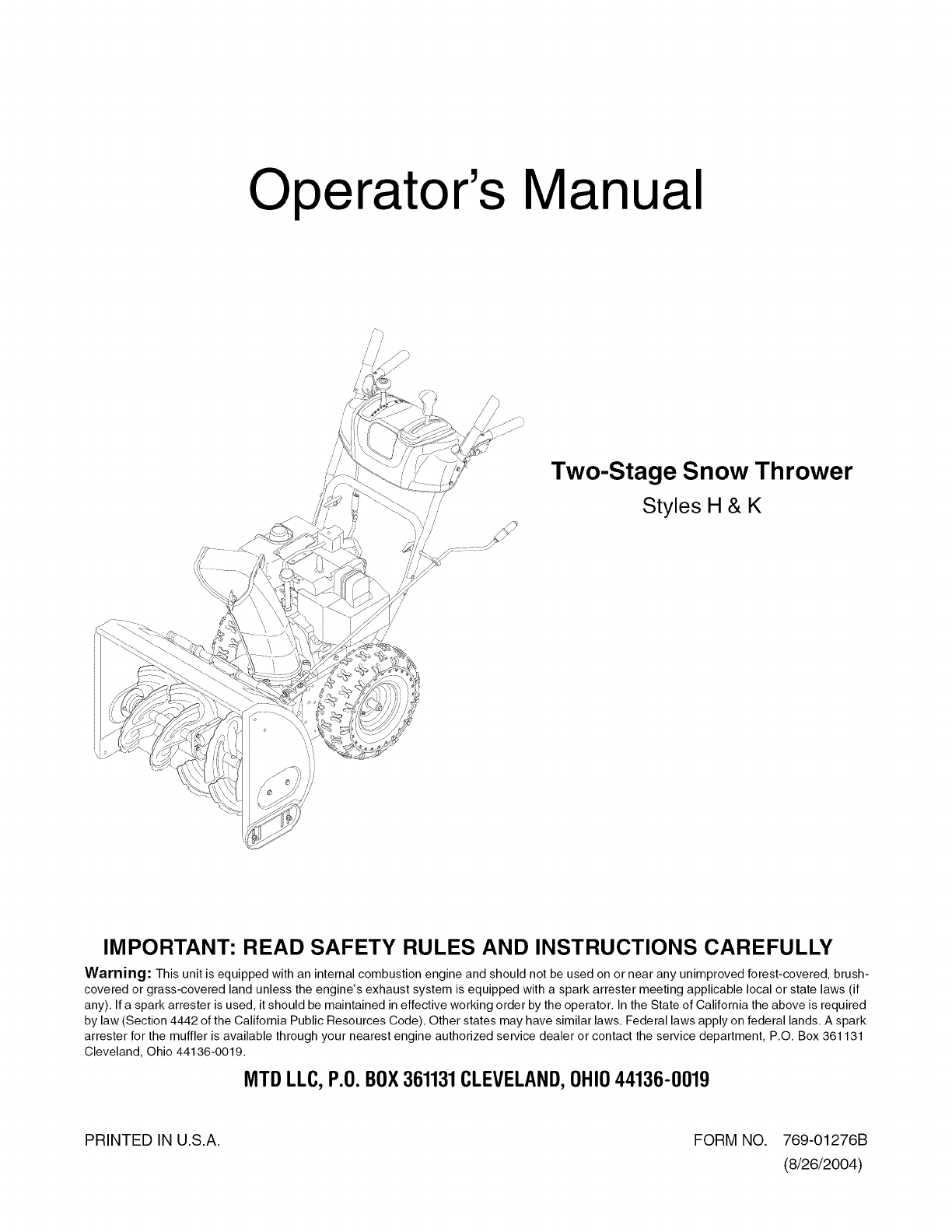 PRINTED IN U.S.A. FORM NO. 769-01276B