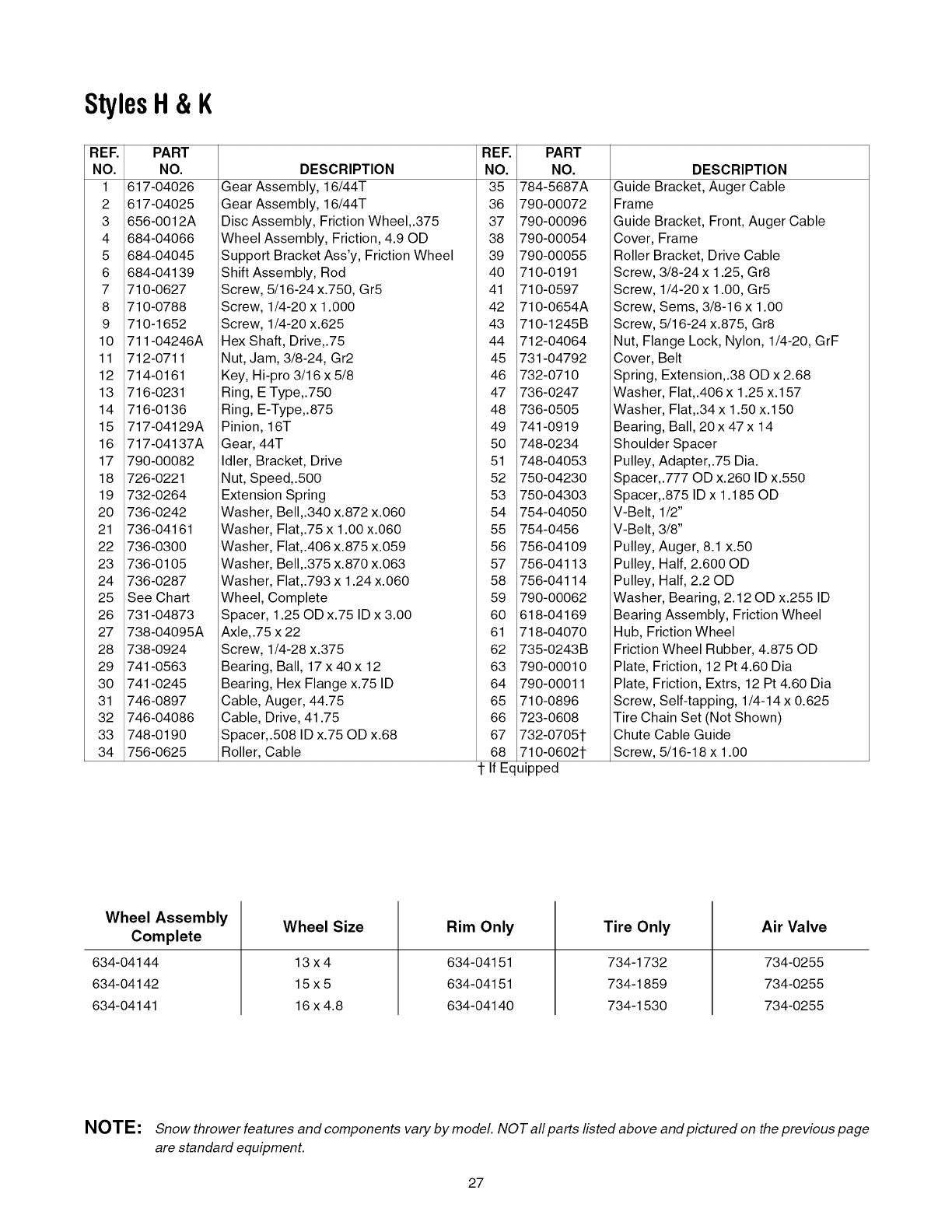 skid shoes, shave plates, auger spiral rubber and tires.