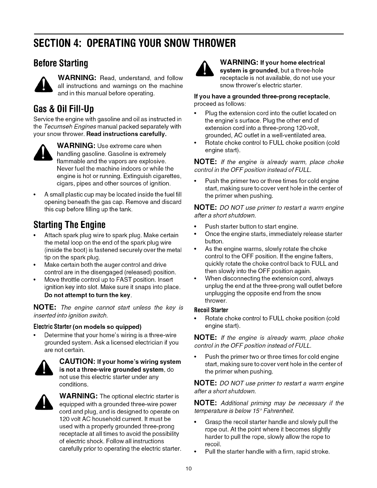 Operating Your Snow Thrower