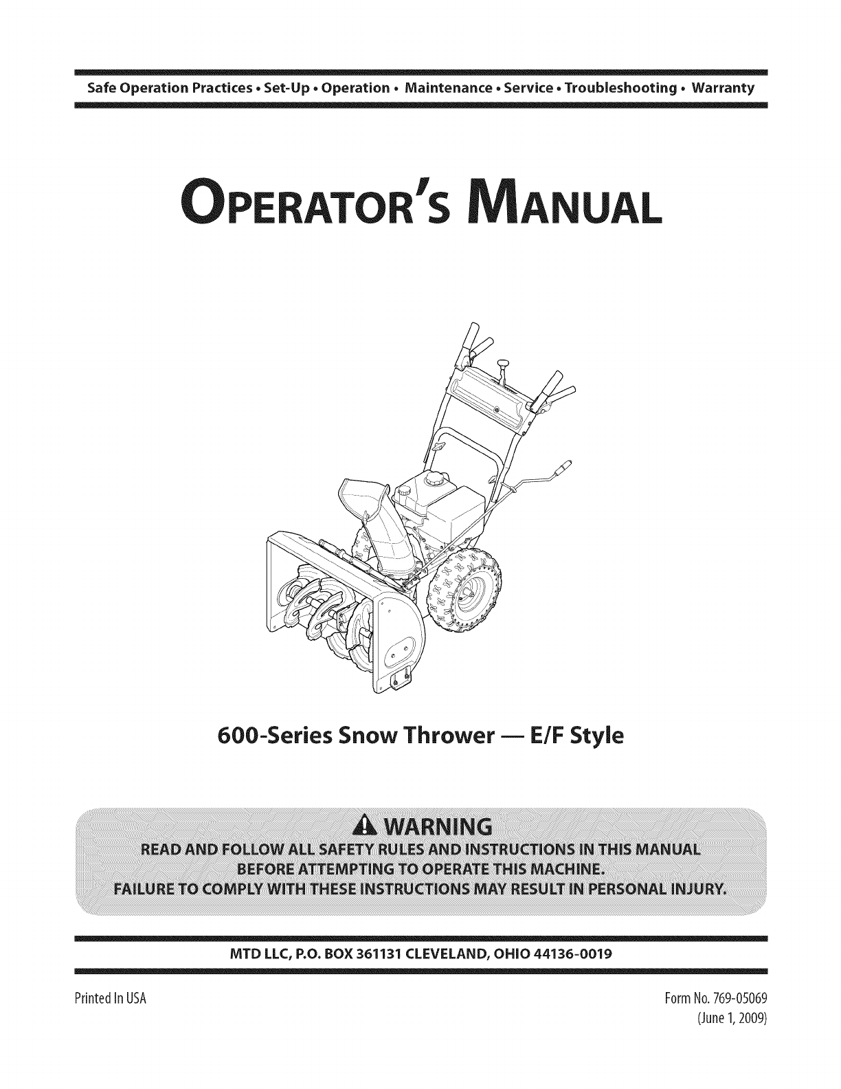 600-Series Snow Thrower mE/F Style