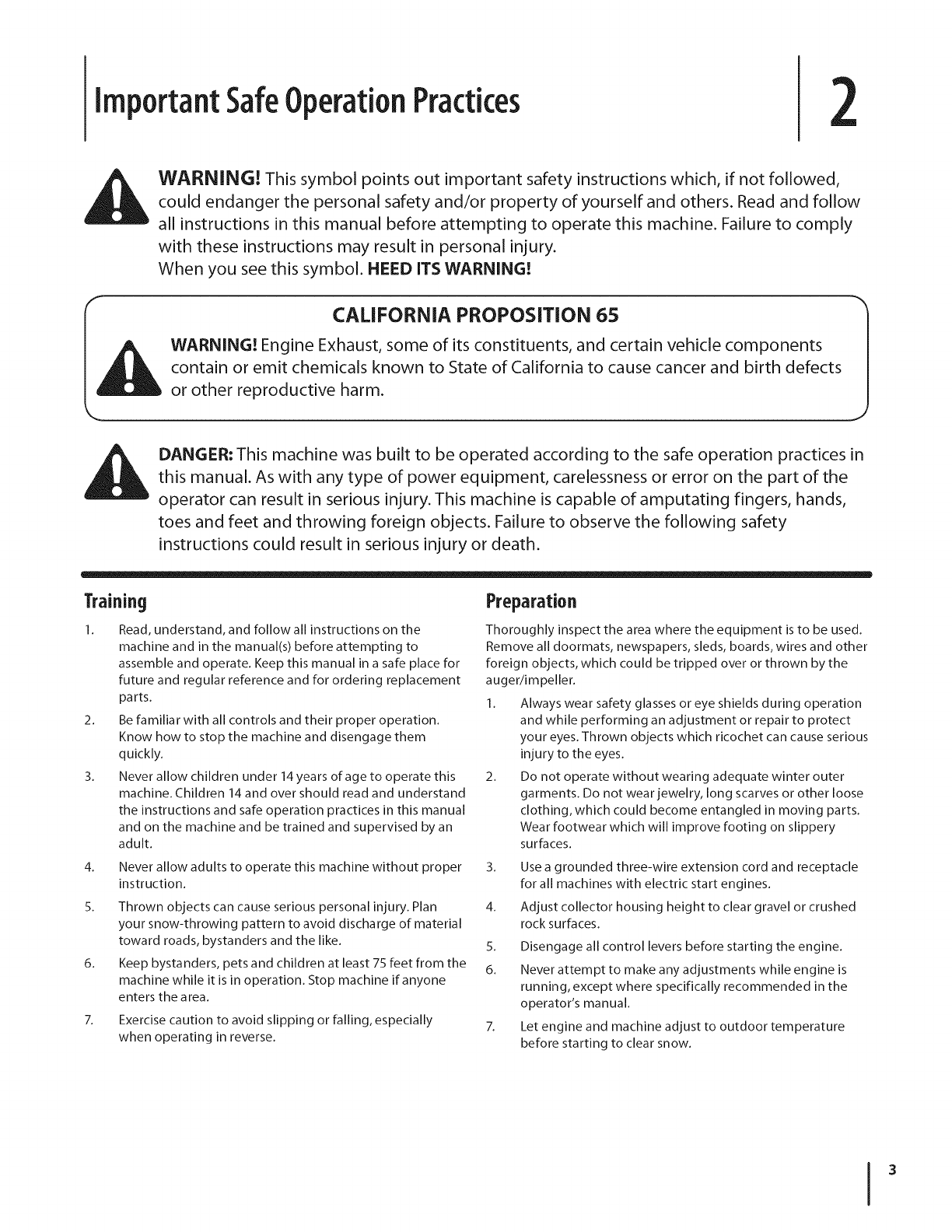 Important Safe Operation Practices ...................... 3