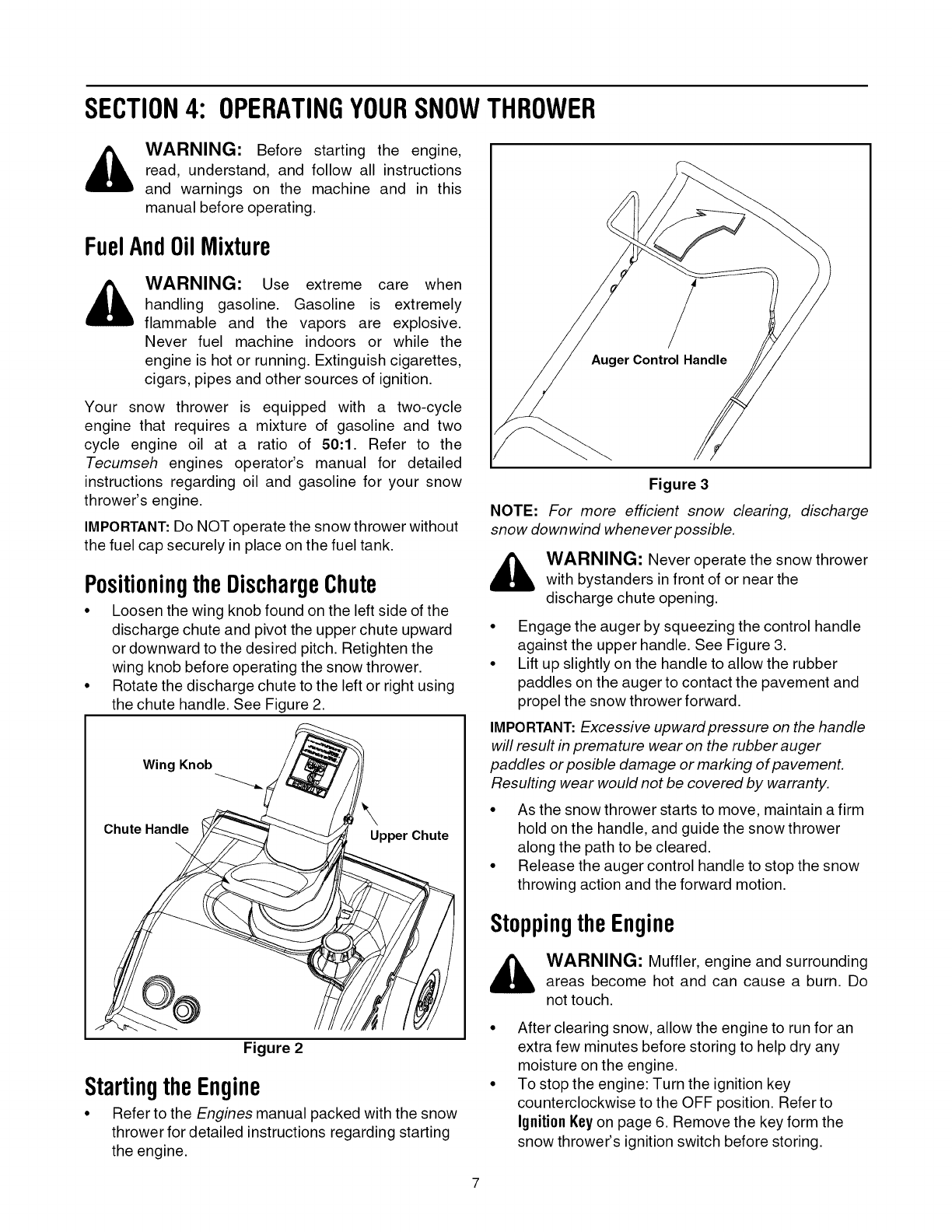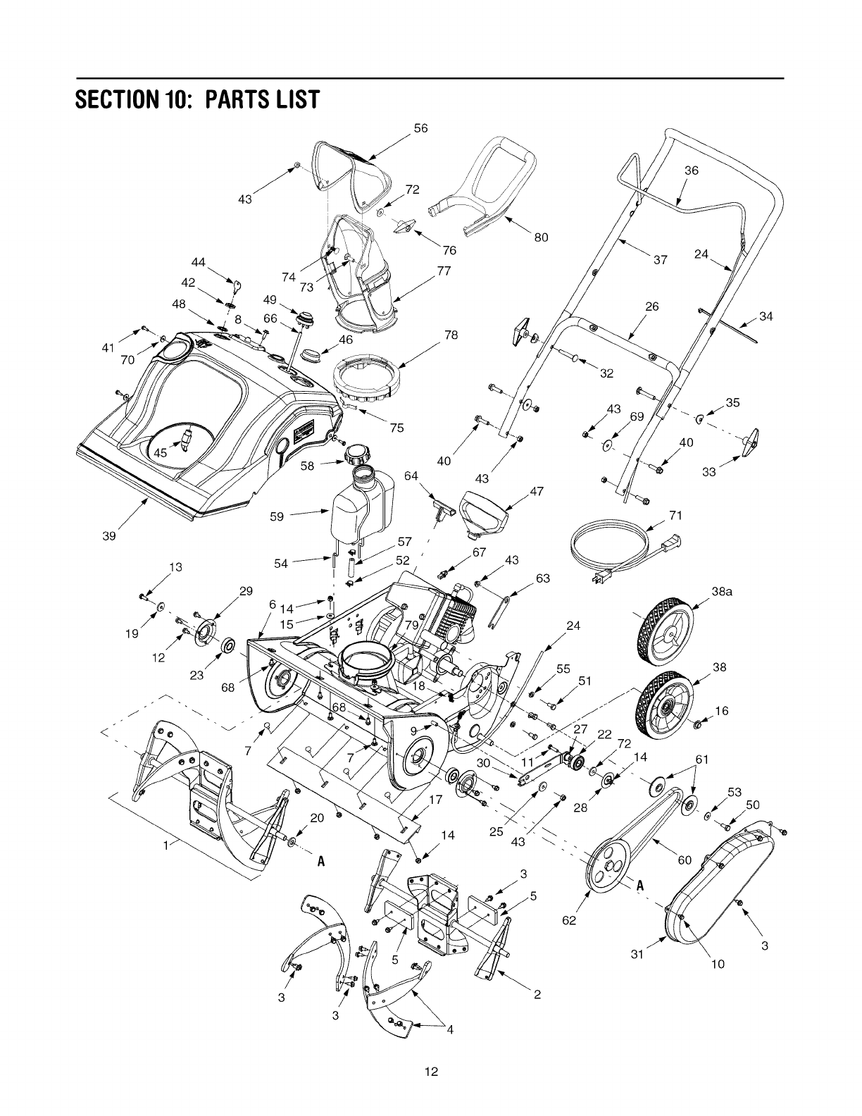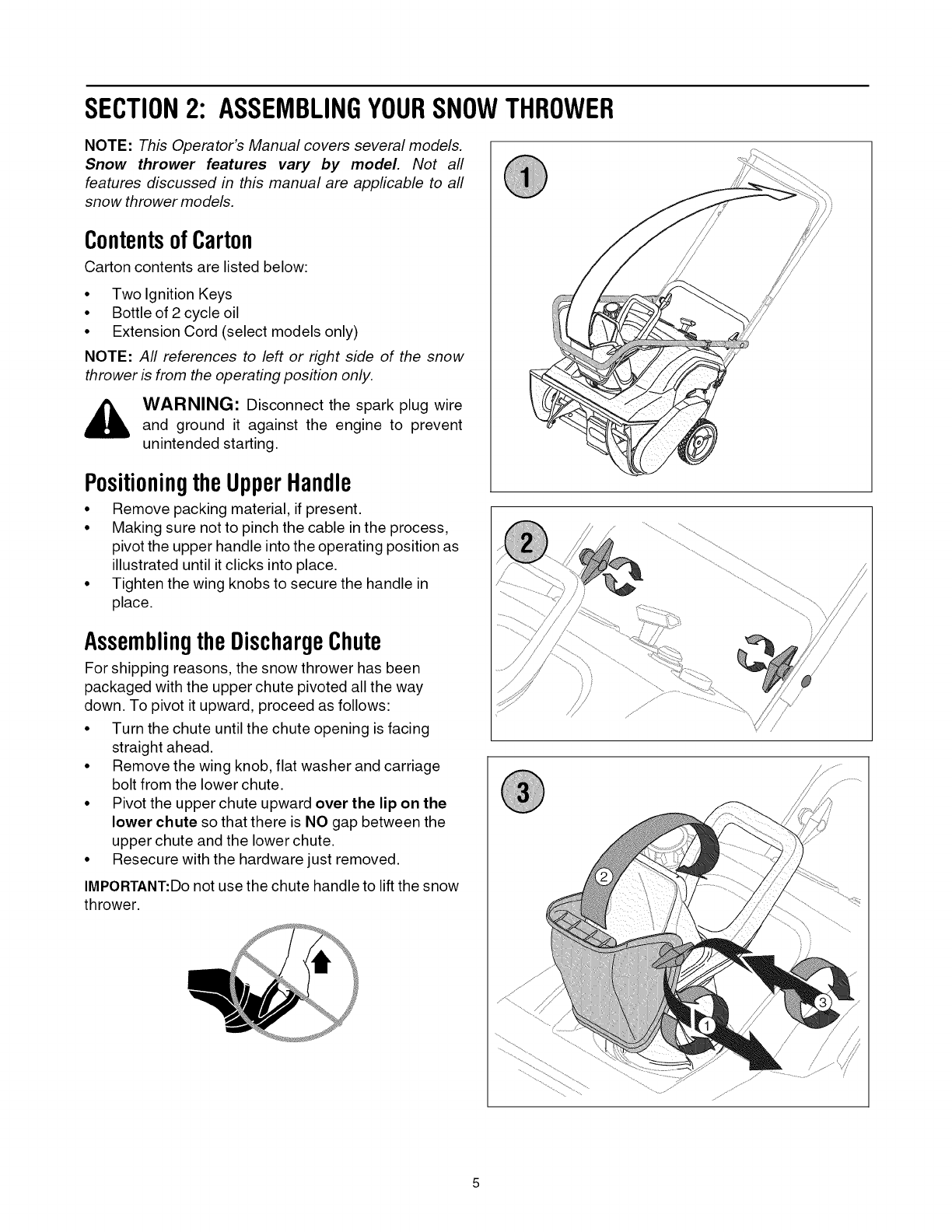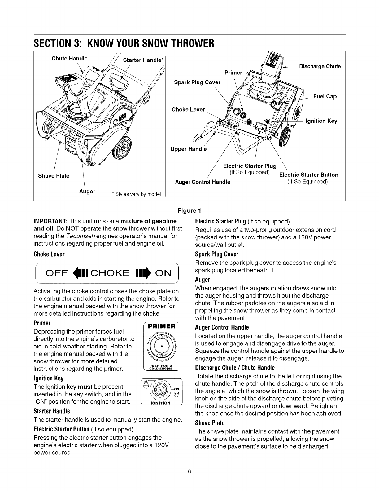 NOTE: Snow thrower features/components vary by model, NOT all parts listed above and pictured on the previous page are standard equipment.