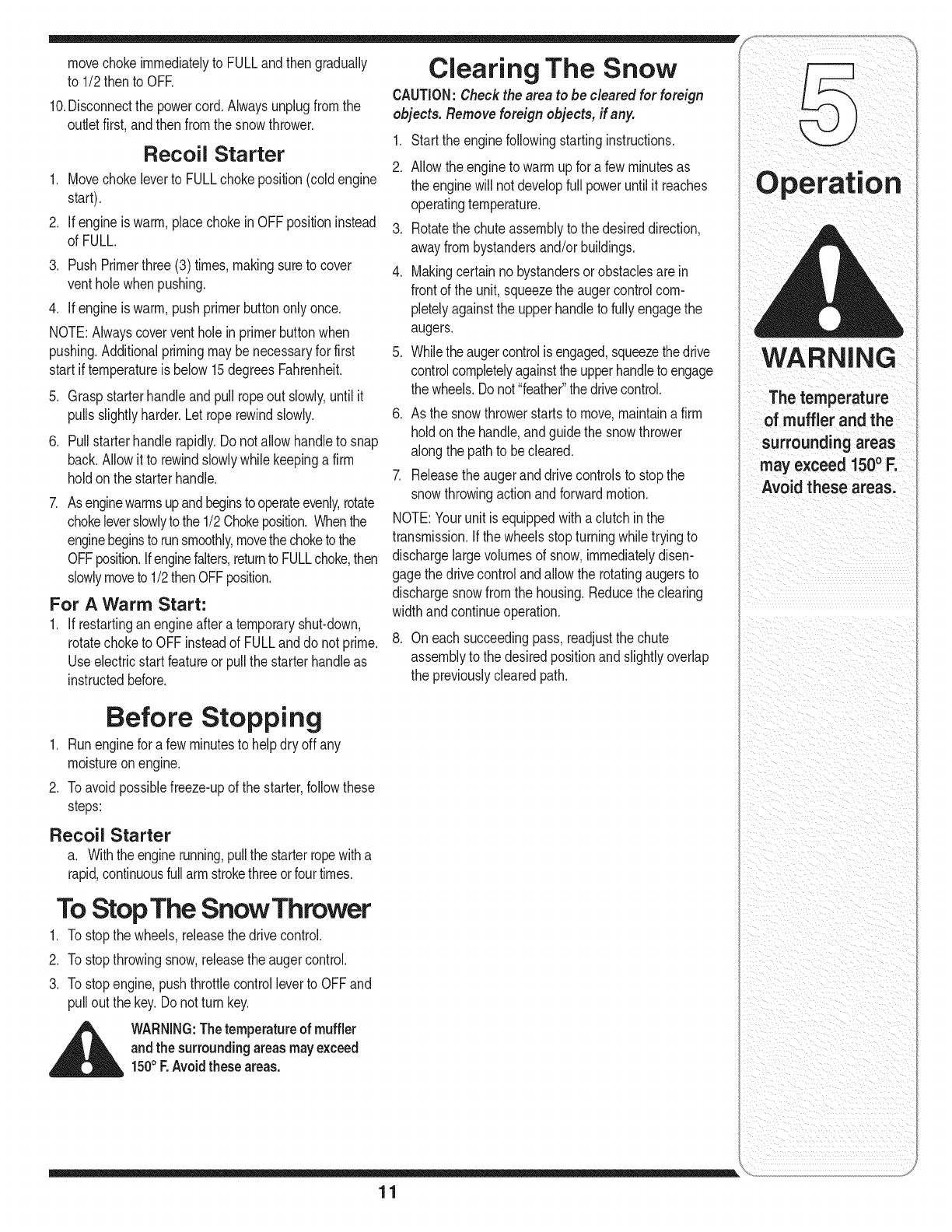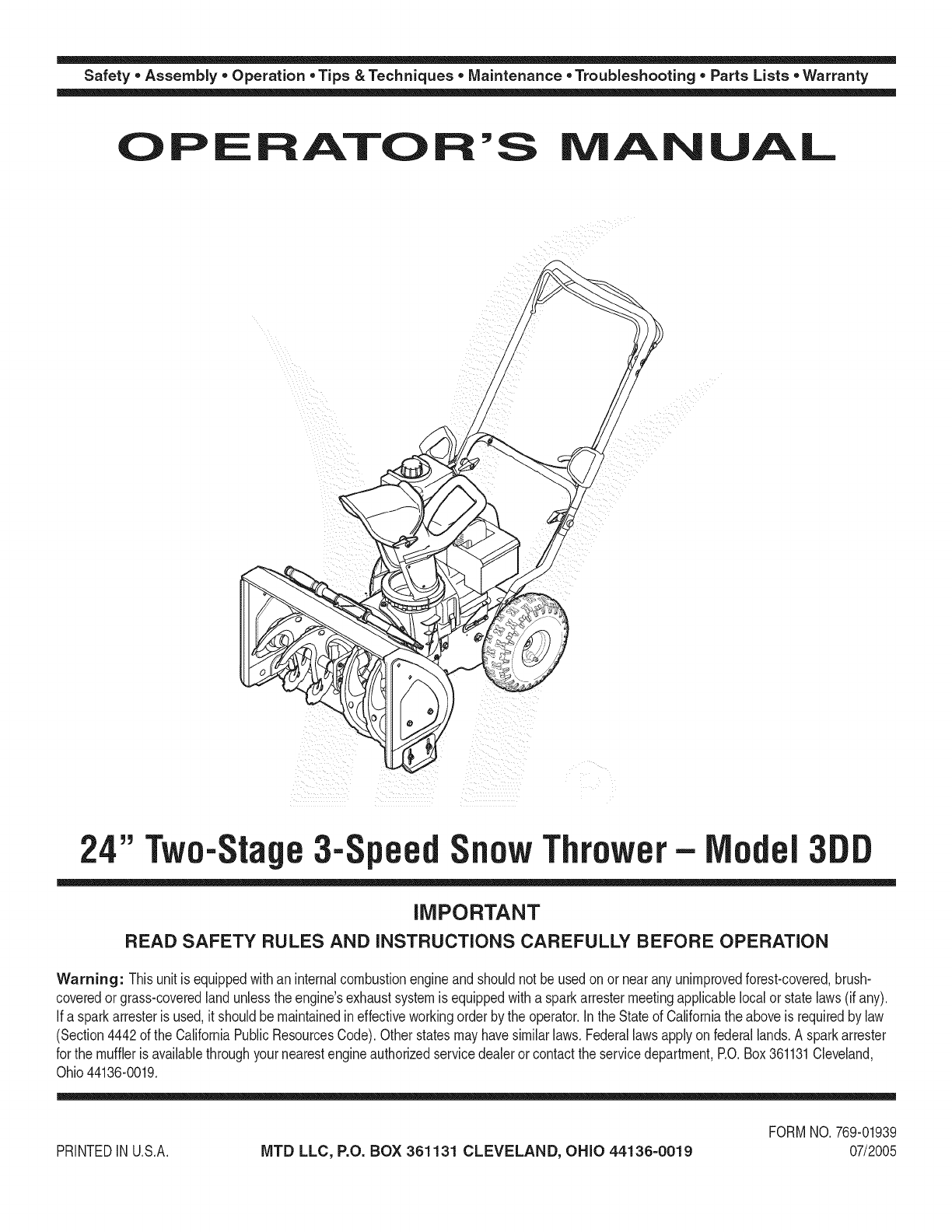 This Operator's Manual is an important part of your new snow thrower, it will help you assemble,