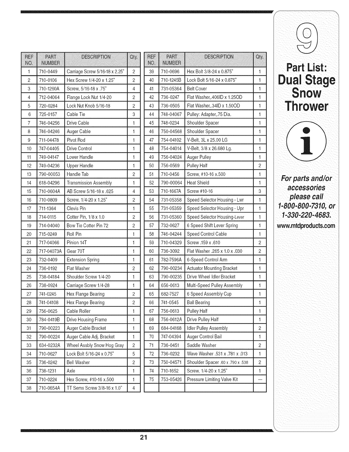 MTD 31AS3DDE729 User Manual SNOW THROWER Manuals And Guides 1109062L
