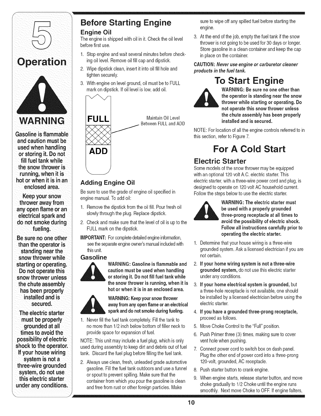 tions, warranty and service. Pleaserefer to the engine manufacturer'sOwner's/Operator's Manual,packed separatelywith