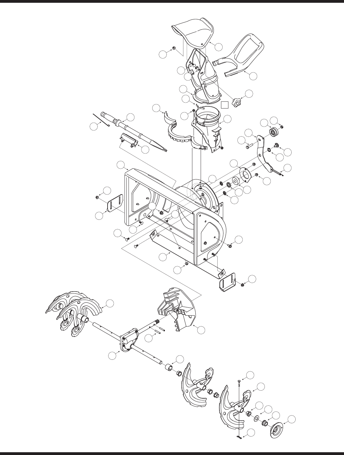 snow thrower skid shoes, shave plates, auger spiral rubber and tires.