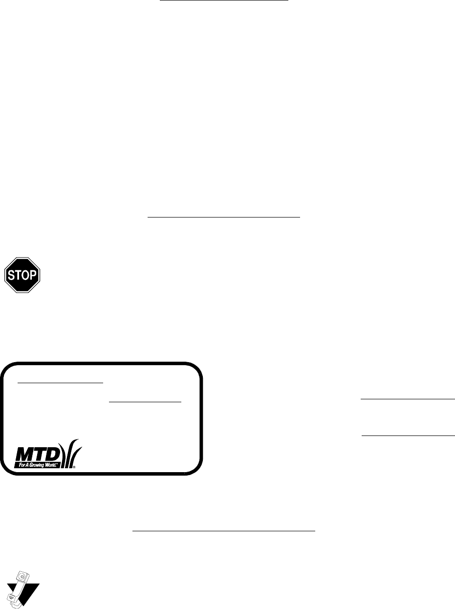 MTD PRODUCTS INC by calling 1-800-800-7310 or writ-