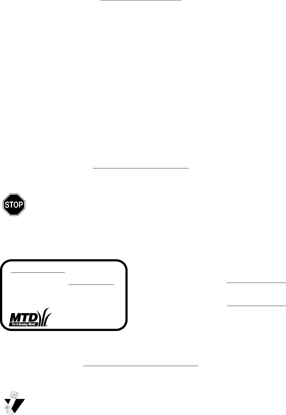 down at the rear of the deck. A sample model plate is explained below. For future reference, please