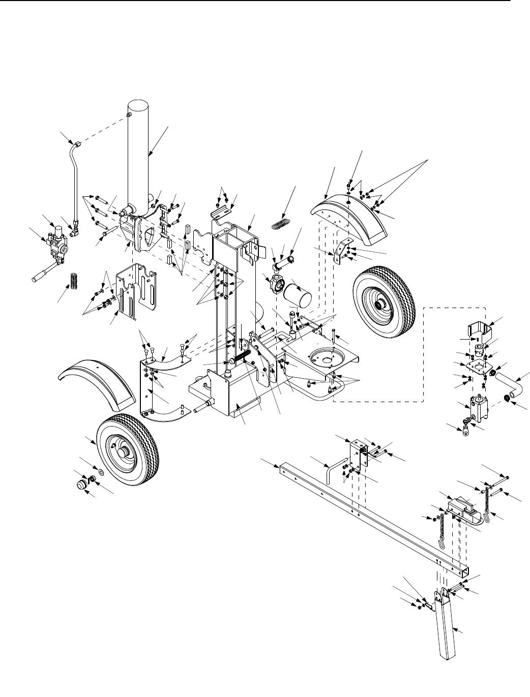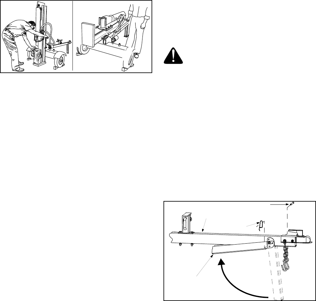 - NOTE: High pressure hose must be above the tongue assembly on the log splitter.
