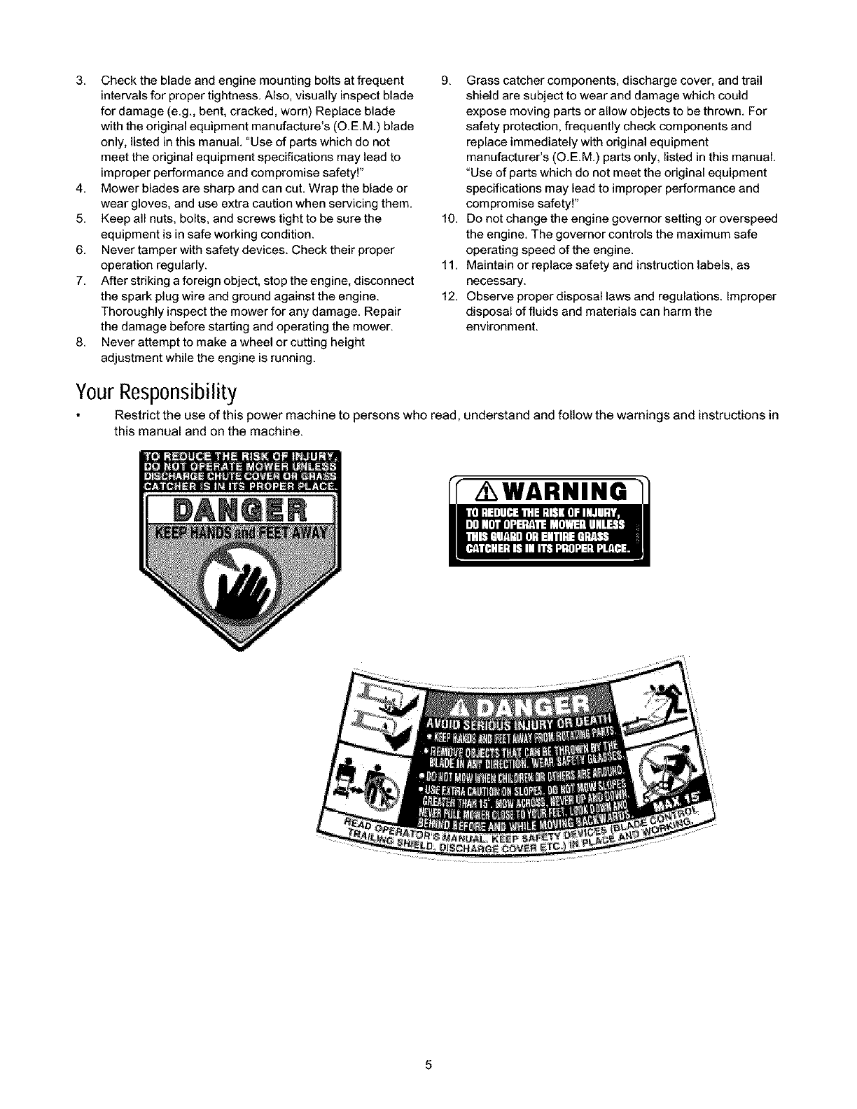 machine is capable of amputating hands and feet and throwing objects. Failure to observe the following safety instruc-