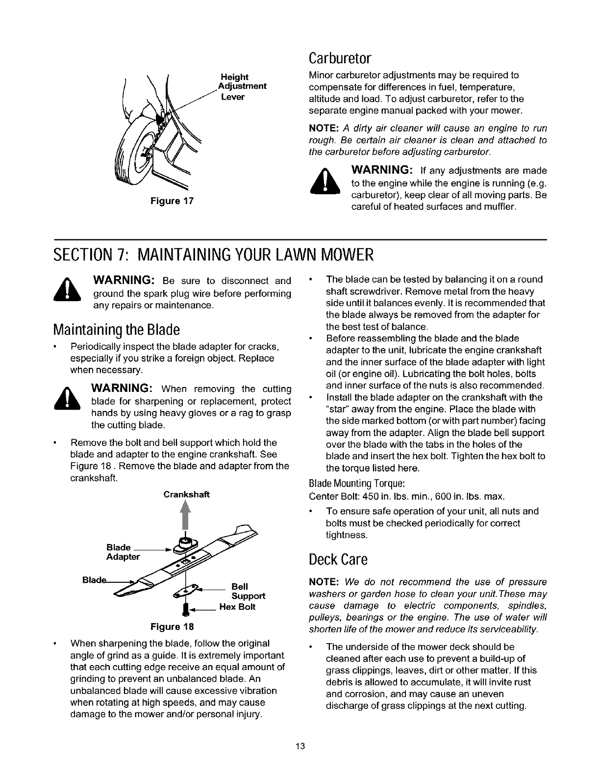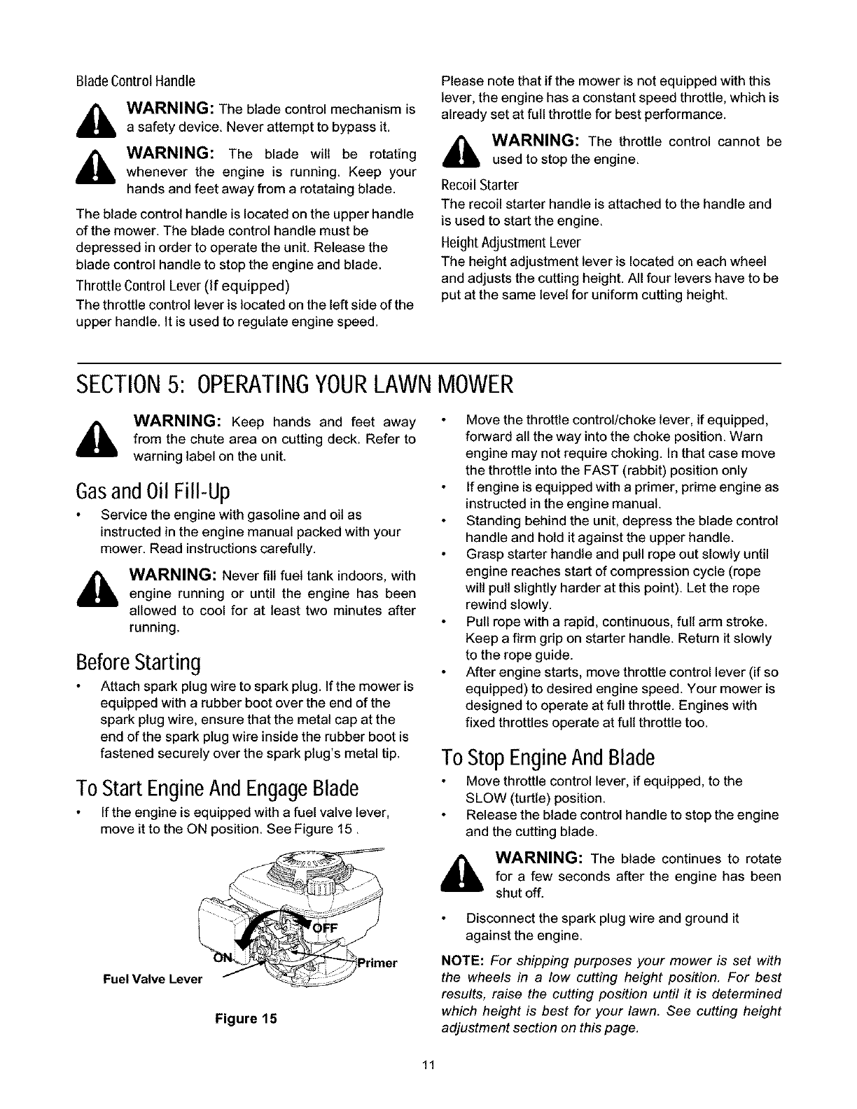 rating, specifications, warranty and service. Please refer to the engine manufacturer's Owner's/Operator's