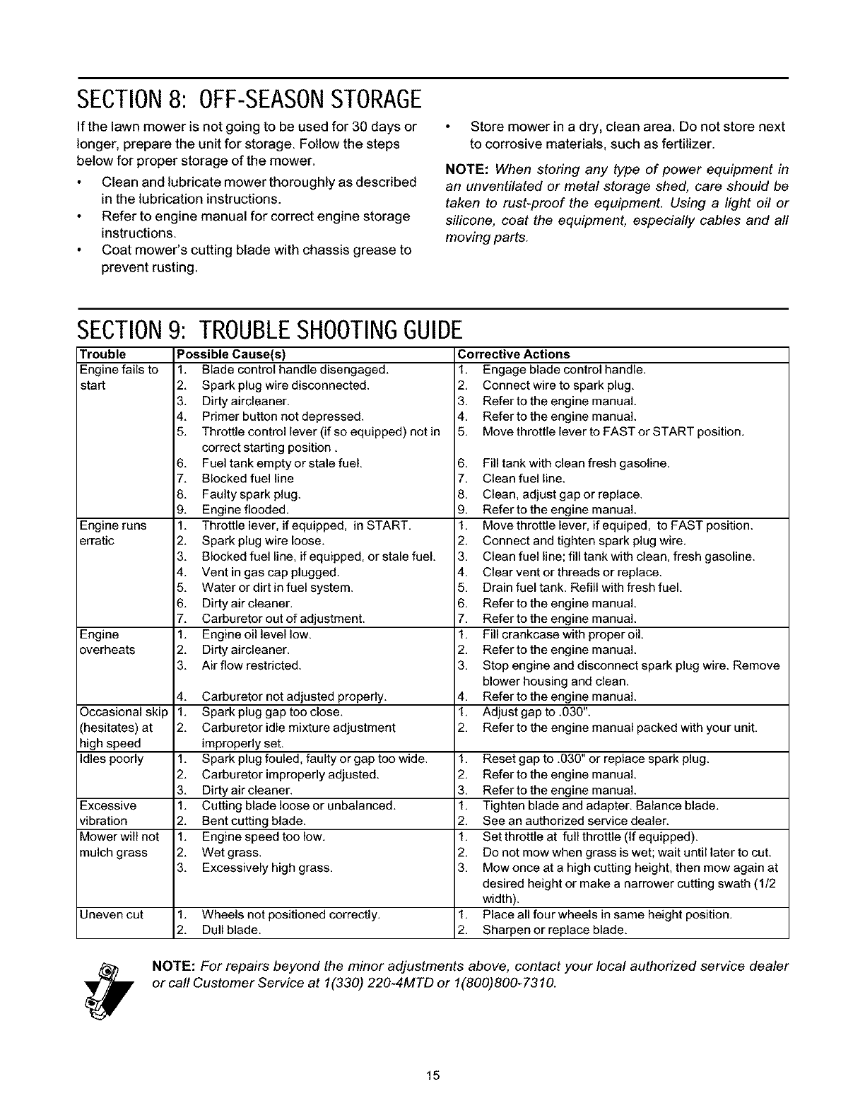 service dealer or contact the service department, P.O. Box 368022 Cleveland, Ohio 44136-9722.