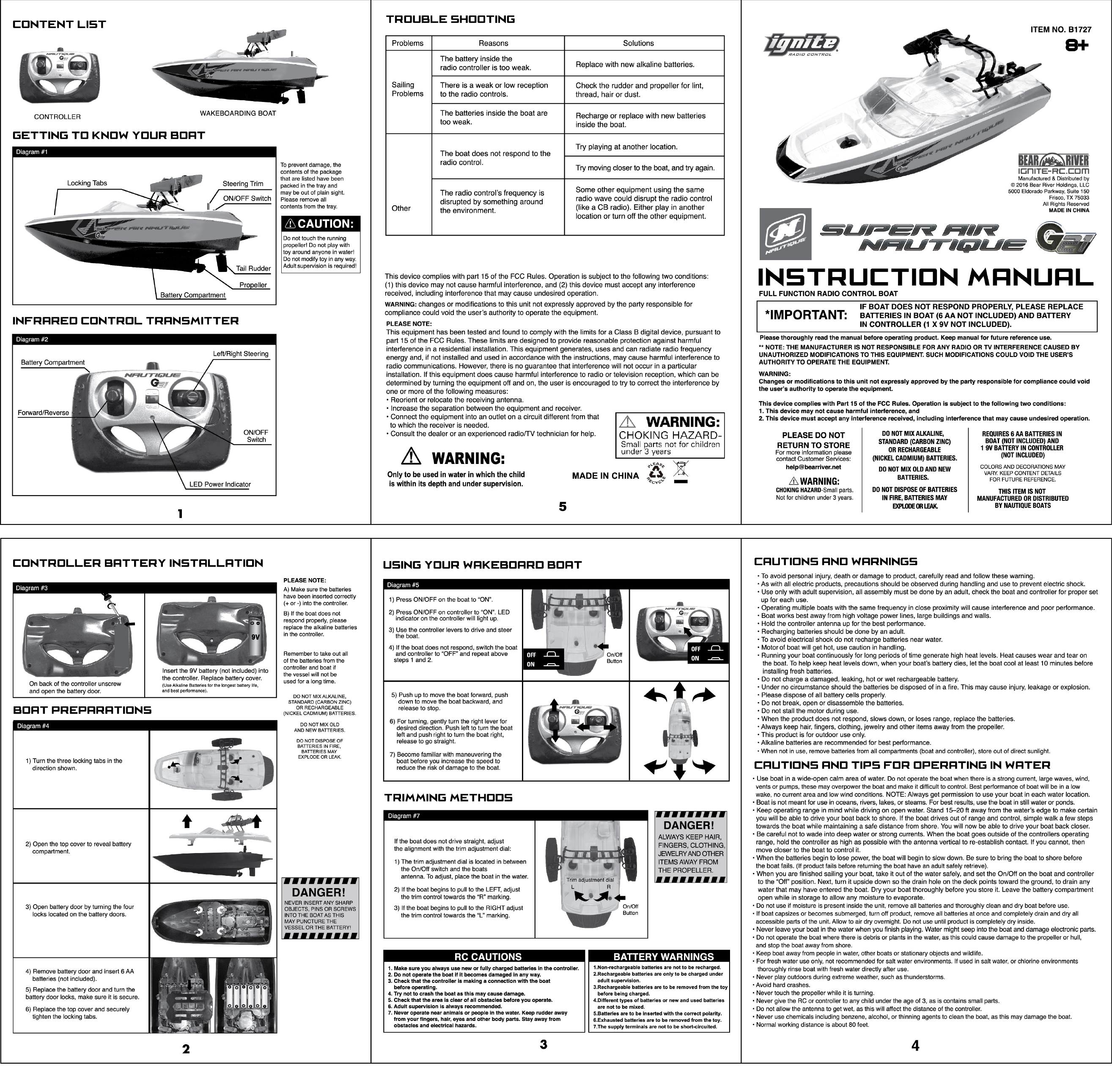 Bear River Holdings, LLC 2.4 GHz Wireless RC Boat - TX Portion Instruction Manual