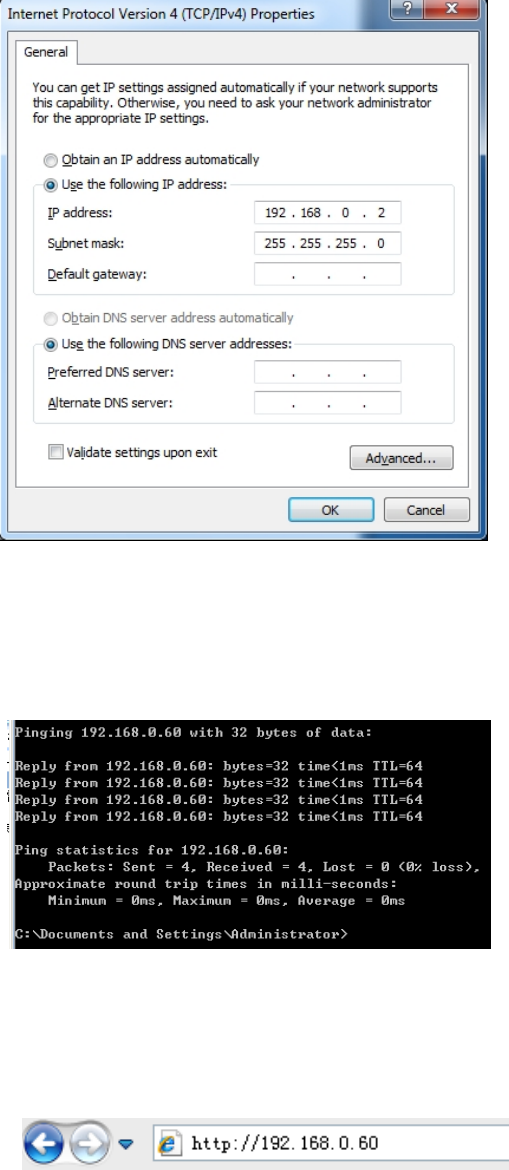a. Set your computer's IP 192.168.0.X network segment; (X is 1-253 integer