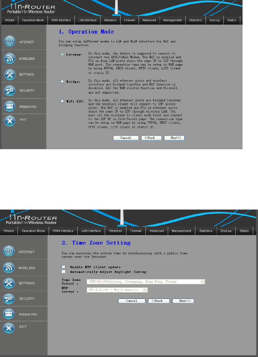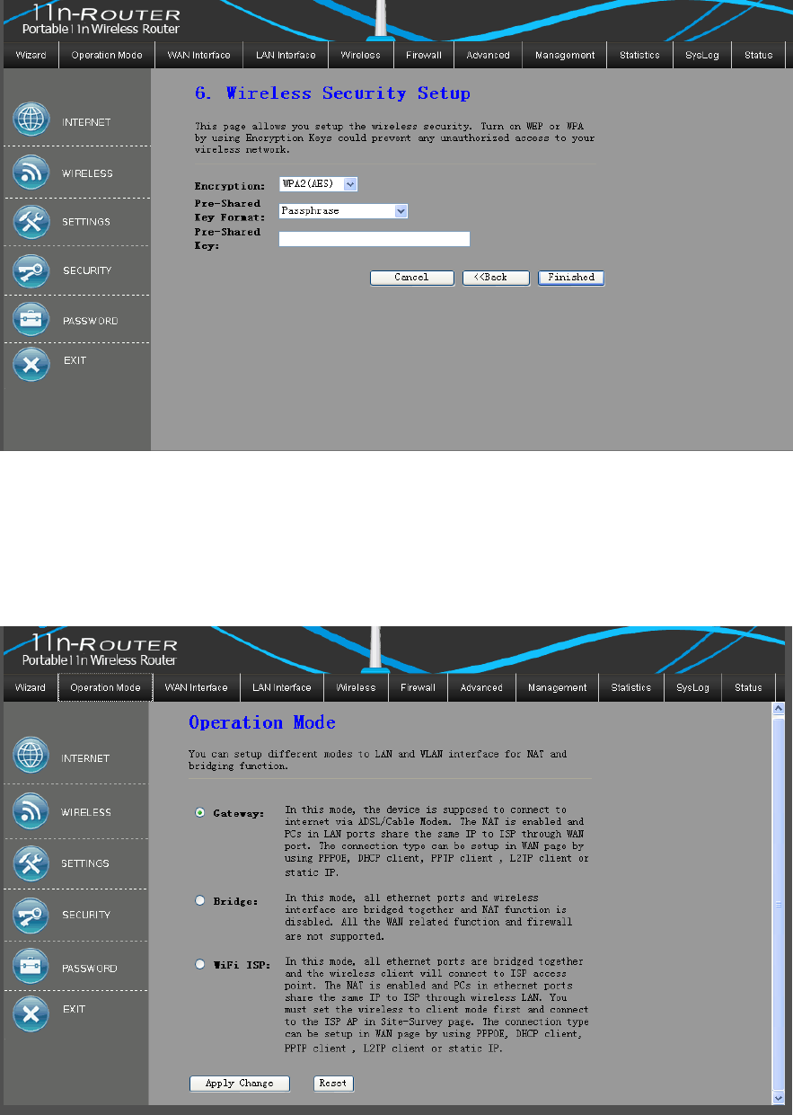 As the following screenshots ,you can setup different modes to LAN and WLAN