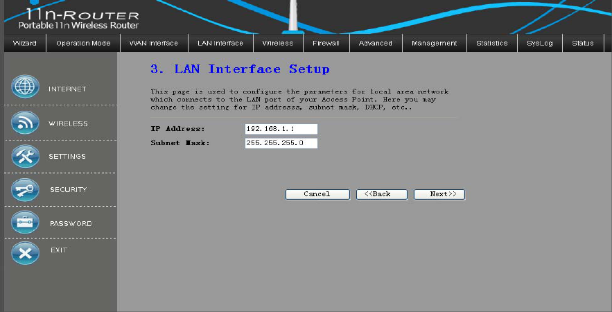 port of your Access Point.Here you may change the setting for IP address,subnet
