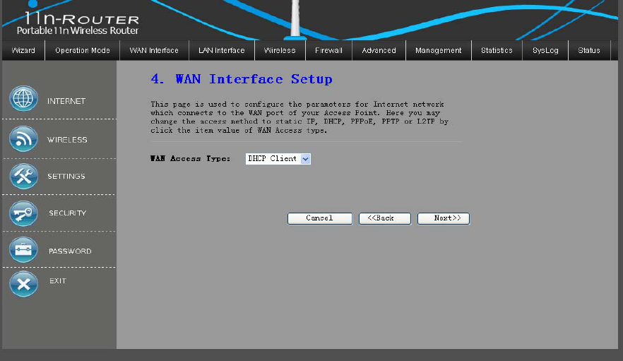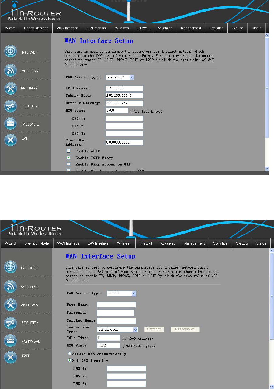 WAN page by using PPPOE,DHCP client,PPTP client,L2TP client or static IP.