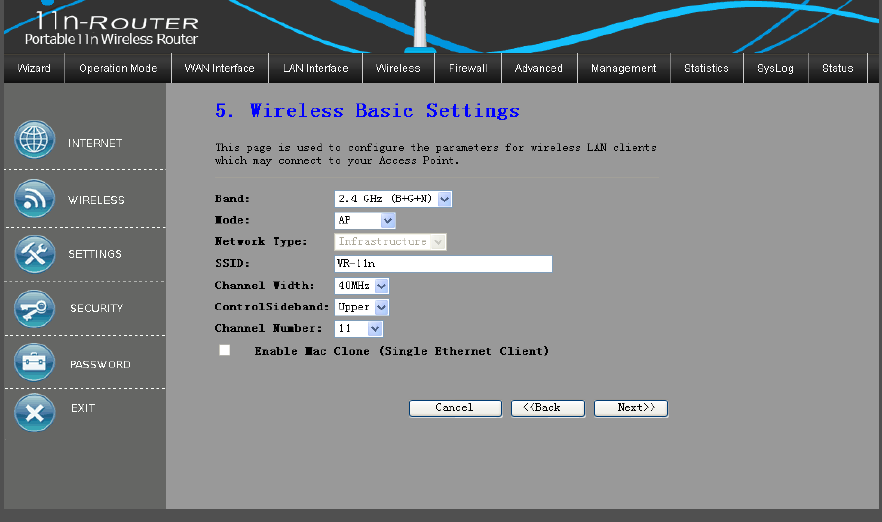 Wireless: In this mode,all ethernet ports are bridged together and the wireless client