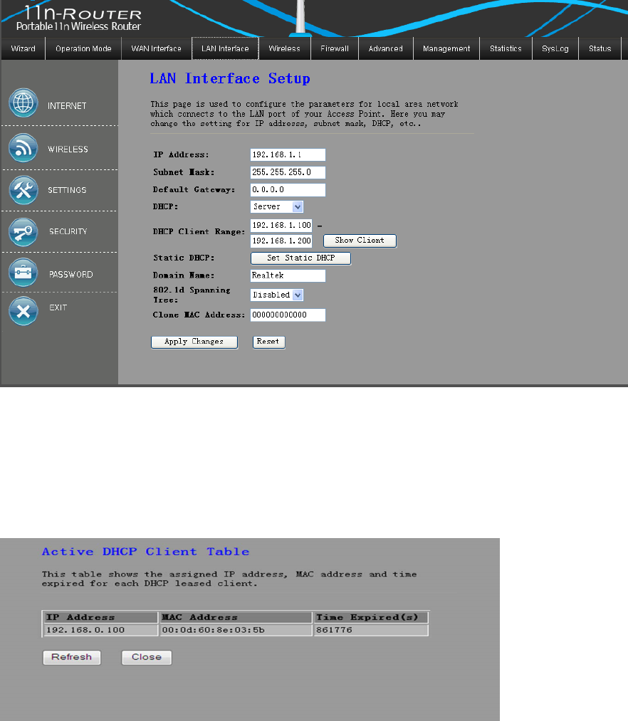 Note: If you change the IP Address of LAN, you must use the new IP Address to login