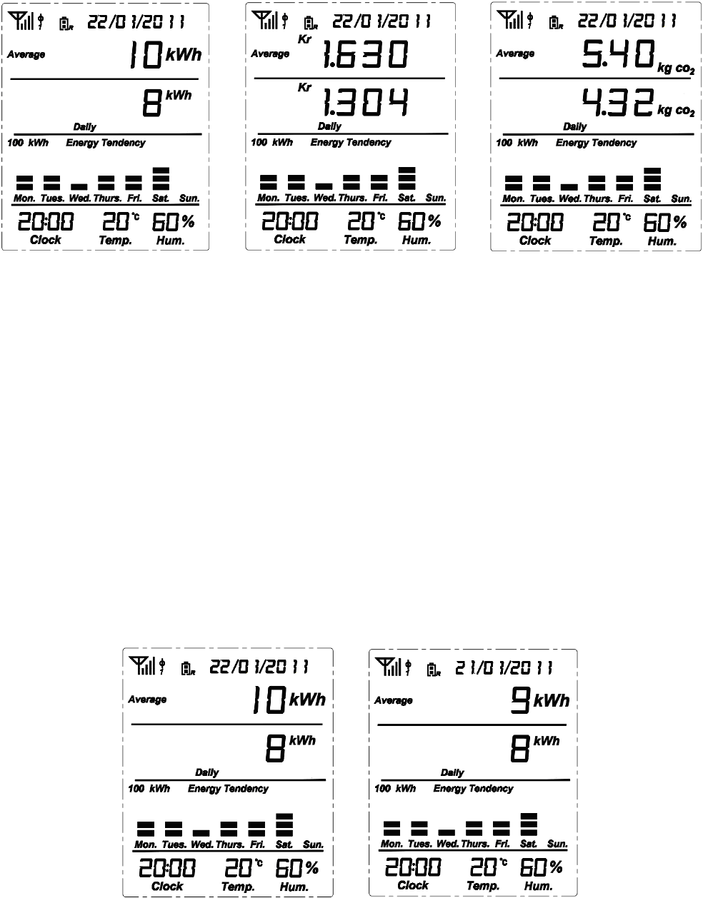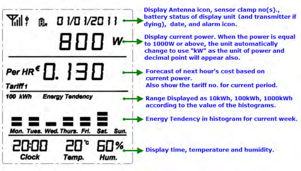 Once the display unit receives the signal from the transmitter, the LCD screen will returns automatically to the default display