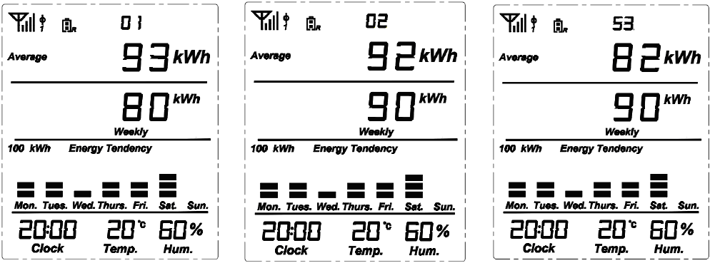 The date on the display will change to be the number in ac cordance with the history data wee k. 01 stands for this week, 02
