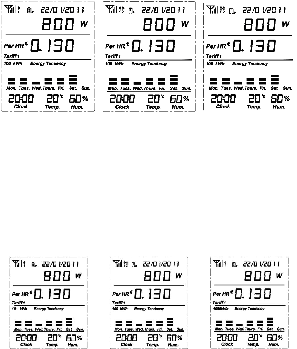 If the highest histogram is equal to or below 10kWh, the full scale of the histogram is displayed as 10kWh. That means each