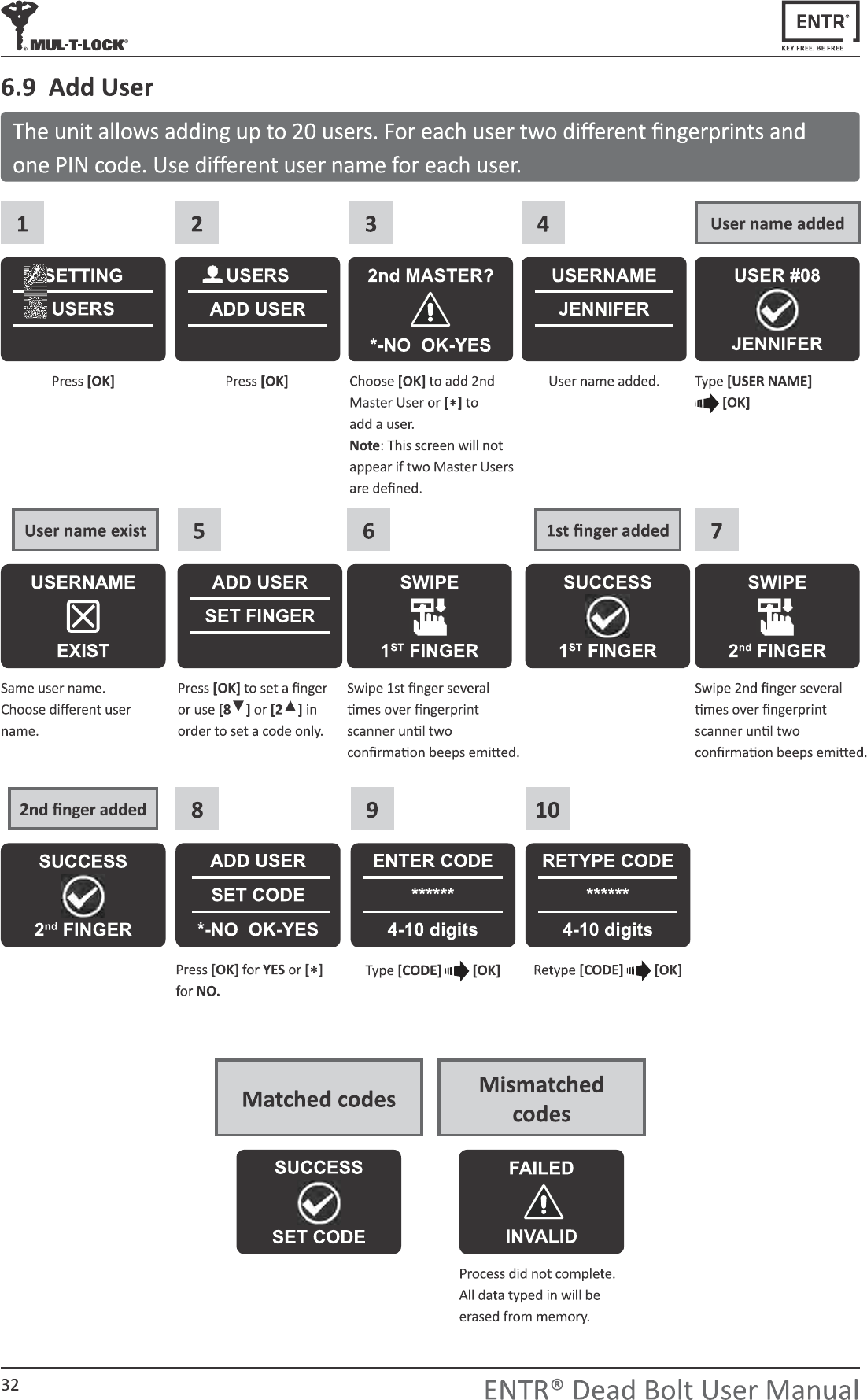 MUL-T-LOCK TECHNOLOGIES LTD ENTR Touchpad Reader ENTRR Fingerprint Reader FCC IC