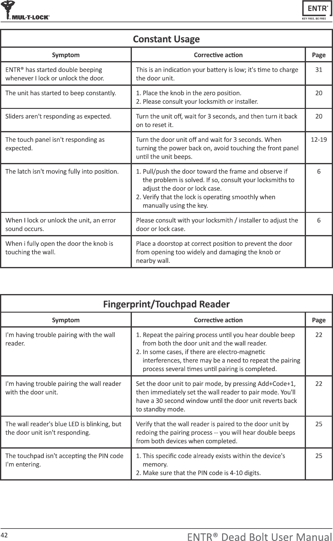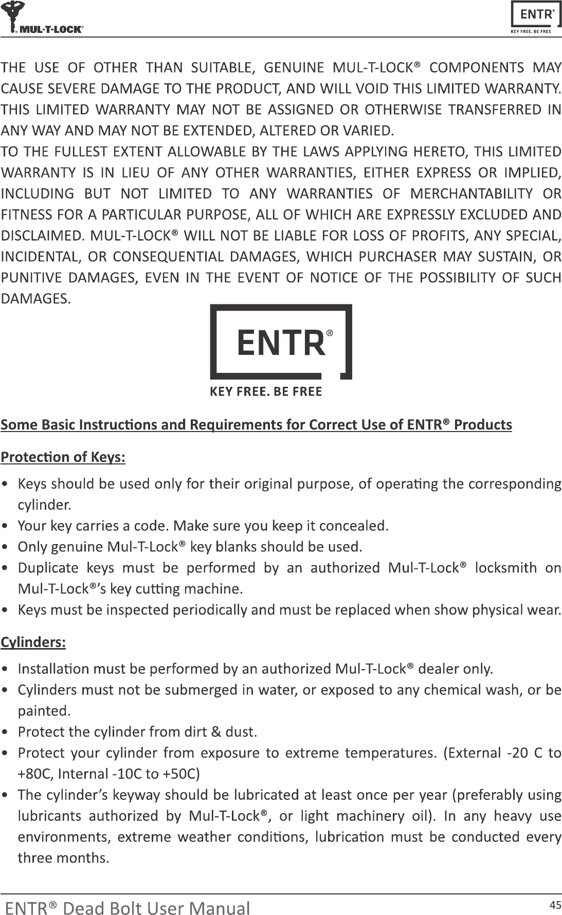 MUL T LOCK TECHNOLOGIES ENTRWRT00 ENTR Touchpad Reader User Manual ENTRR Fingerprint Reader FCC IC