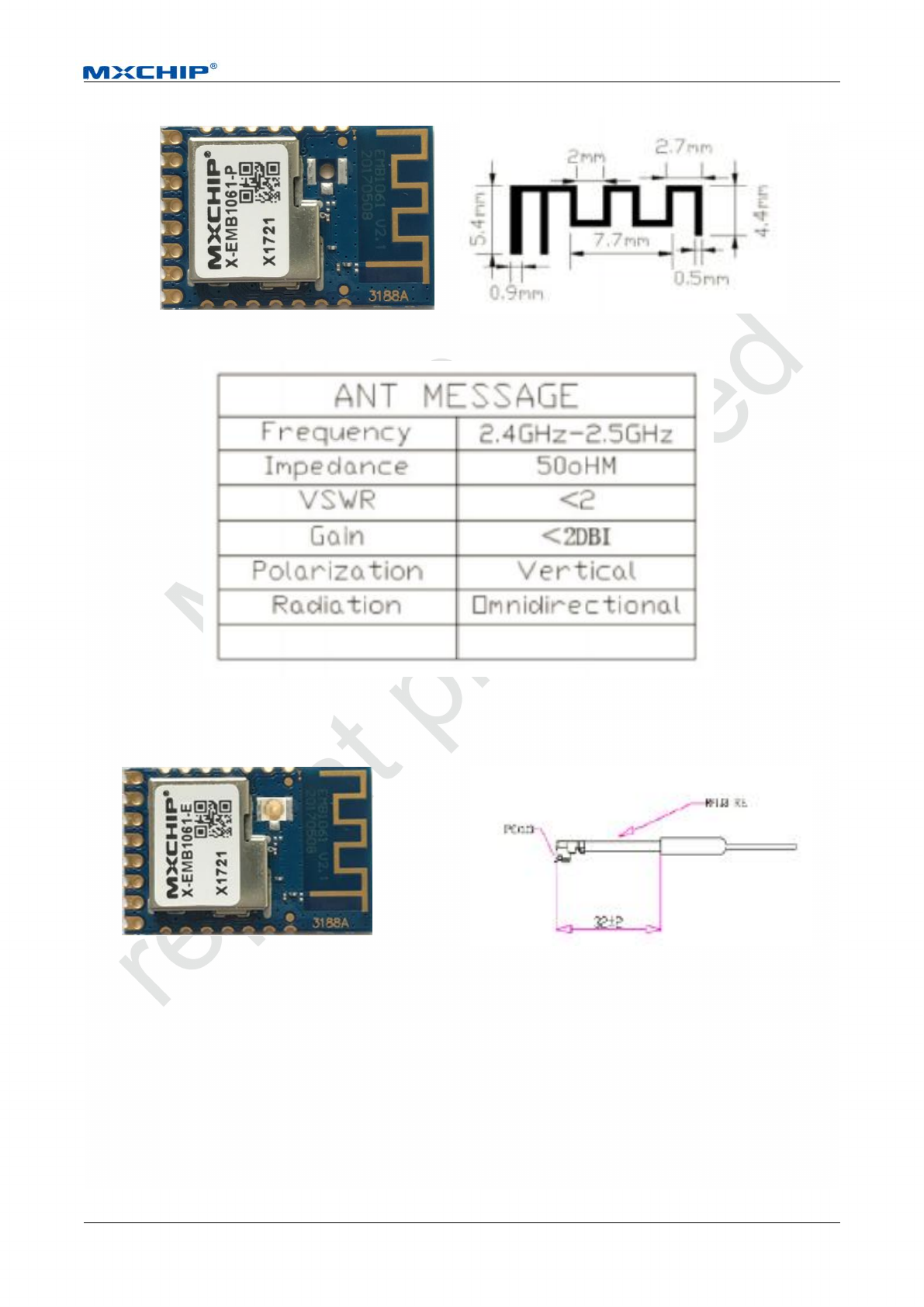 EMB1061 has two types of antenna: PCB antenna (EMB1061-P), IPEX connector (EMB1061-E).