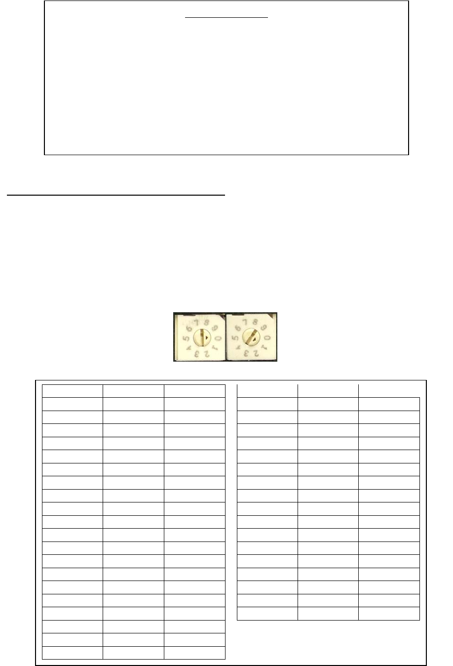 number “0” and turn the right switch to the number “1”. Note: It is important to confirm the switch