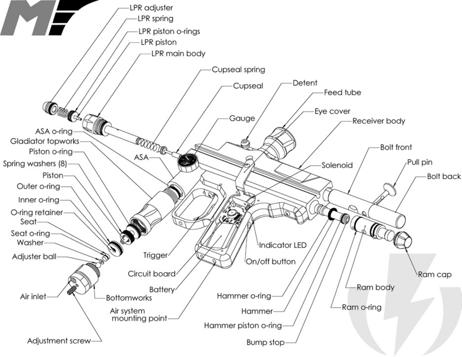 The Cyborg is an open bolt, electropneumatic marker designed specically for