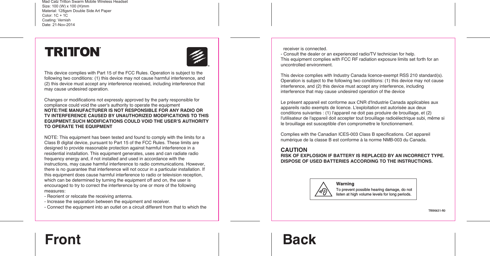 Mad Catz L790631A Mad Catz Tritton Swarm Mobile Wireless Headset User Manual