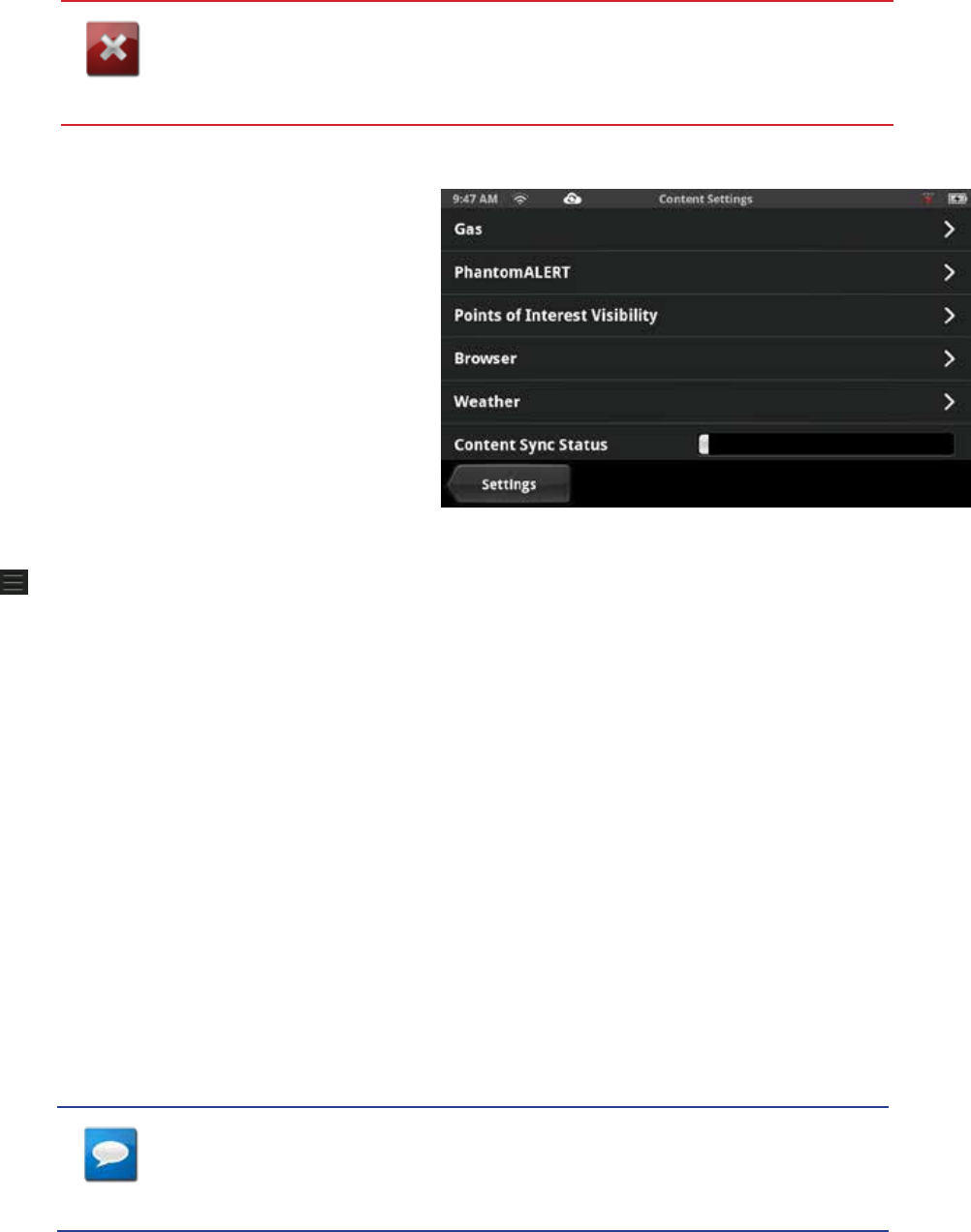 Visible Alerts: Tap to view a list of available content alerts. When checked the content tiles