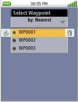 8. Select the waypoint name from the list of waypoints and press