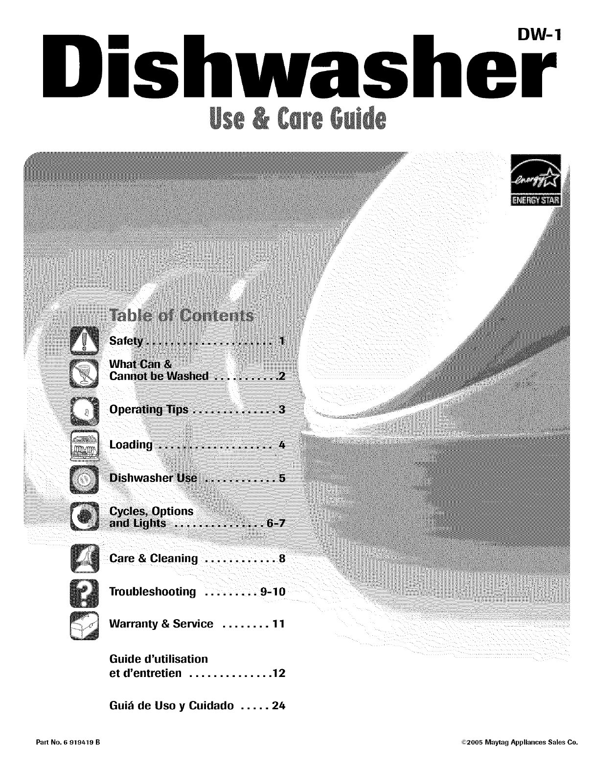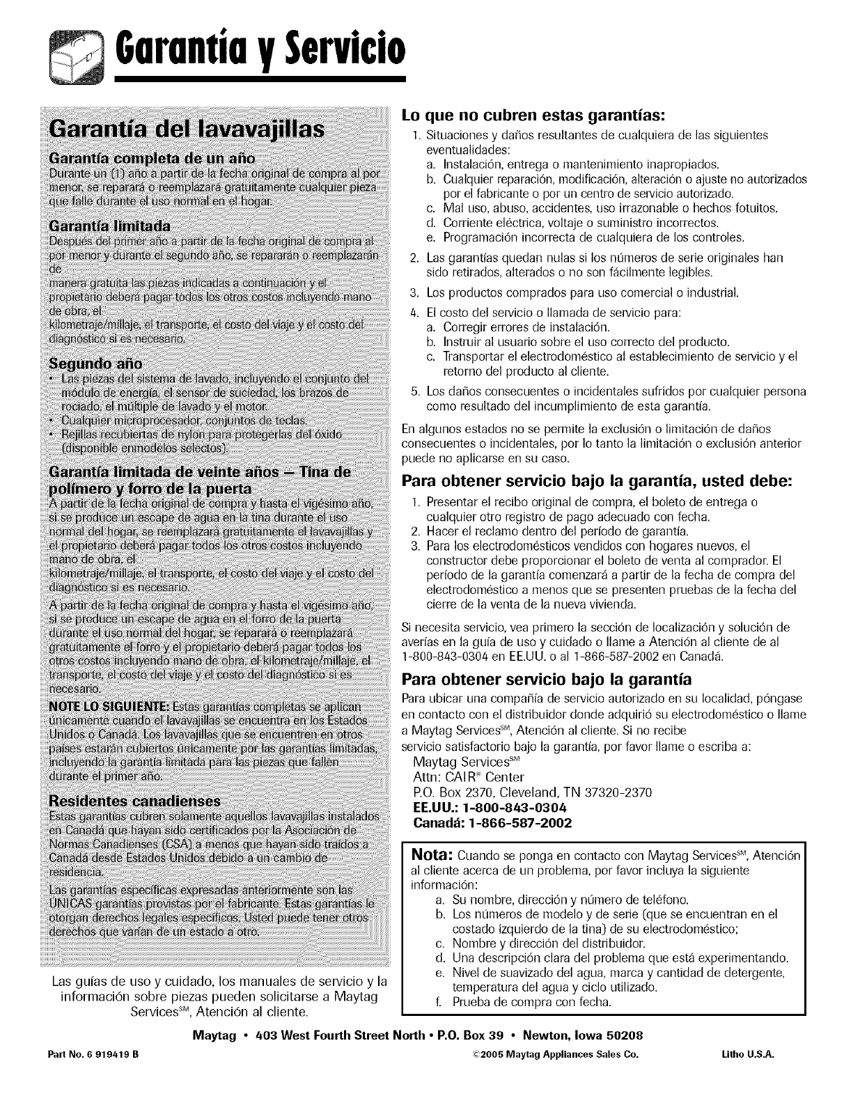 Part No. 6 919419 B c2005 Maytag AppliancesSales Co. Litho U.S.A.
